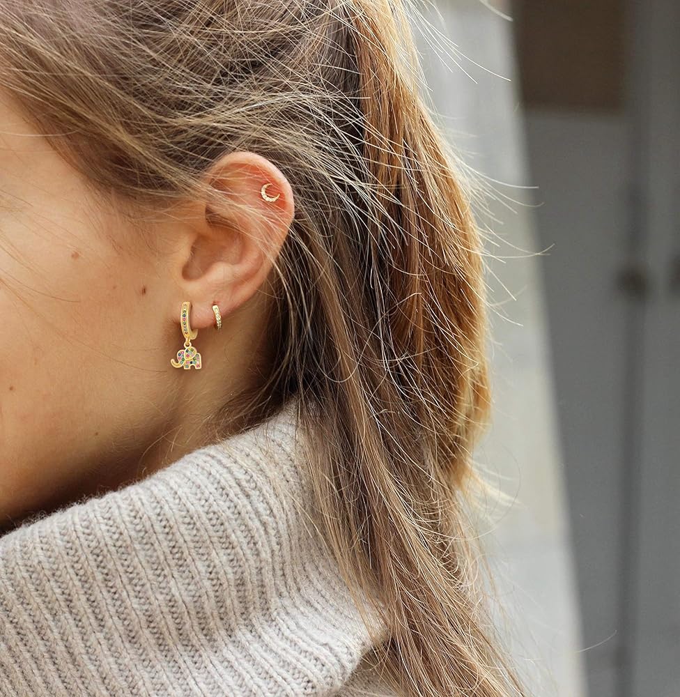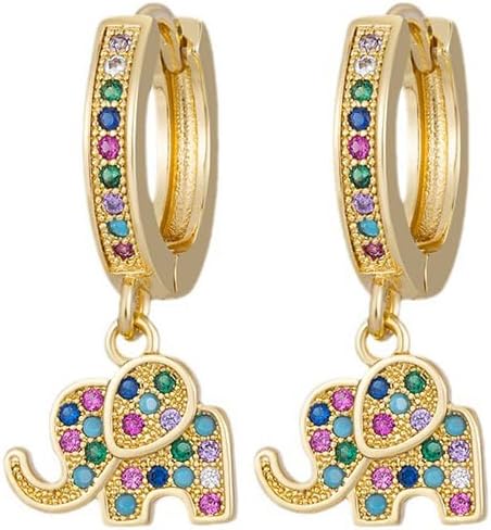 - تصميم أنيق: أقراط دائرية مطلية بالذهب تتميز بقطع ساحرة على شكل فيل مزينة بأحجار كريستال متعددة الألوان بنمط فسيفساء رقيق