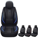 مجموعة كاملة من أغطية مقاعد السيارات ذات المقاس العالمي تناسب Acura TSX 2004-2014، مجموعات داخلية للسيارات من جلد البولي يوريثان مع مسند رأس ووسادة خلفية بخط أسود وأزرق in Kuwait