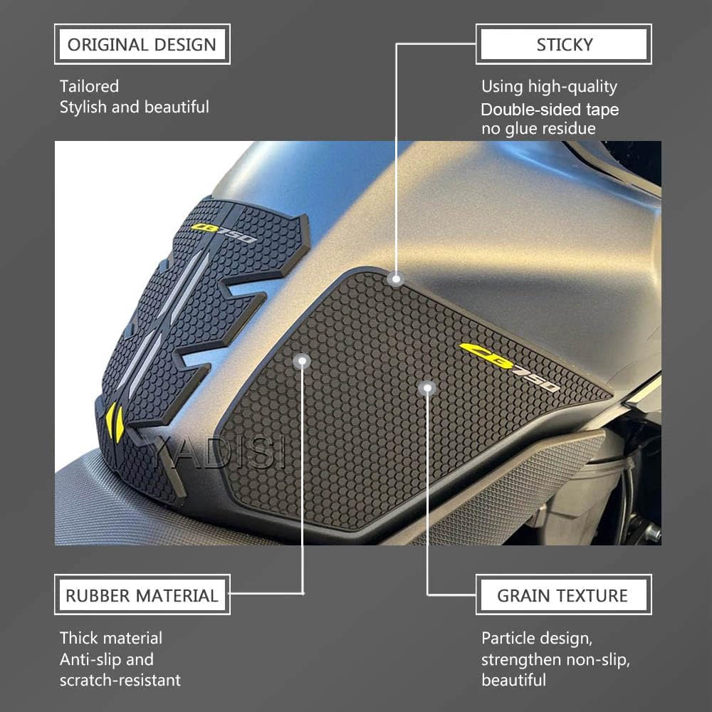 • Function:The motorcycle fuel tank pad serves a dual purpose: it provides protection for the tank while also offering an anti-skid surface for added safety. This functional accessory is a valuable addition to any motorcycle.