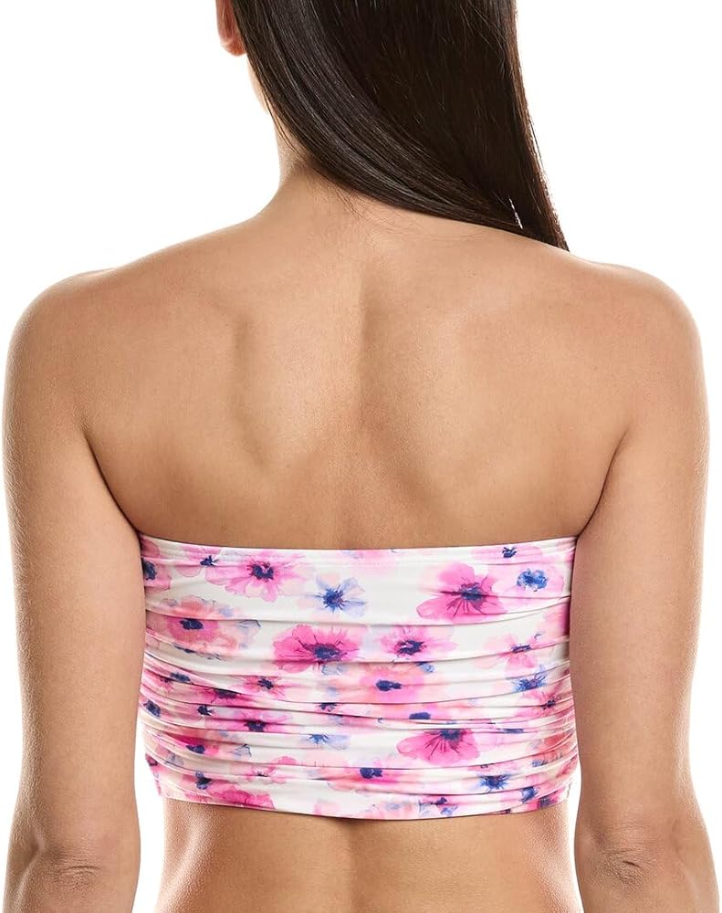 This is a top only, coordinating bottom sold separately C6Y955-100 Color/pattern: pink multicolor Design details: ruched fabric, and bead accents Slip-on styling 92% nylon, 8% spandex Lining: 92% polyester, 8%elastane Hand wash Imported