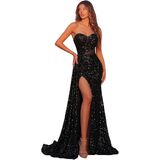 تصميم مثير: فساتين ضيوف الزفاف ذات ربطة عنق سوداء للنساء هي زخرفة رقيقة من الترتر. رقبة على شكل قلب، تصميم فتحة جانبية مثيرة وتصميم بدون ظهر يجعل هذا الفستان الرسمي جذابًا وأنثويًا.