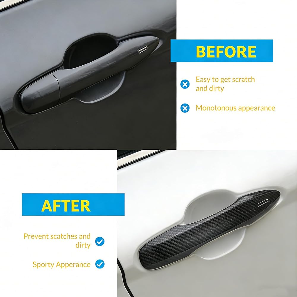 • Effortless to install—simply align and press into place for an instant upgrade. The smooth, polished finish delivers an original car feel, enhancing your vehicle's appearance while protecting door handles from scratches, wear, and daily damage.