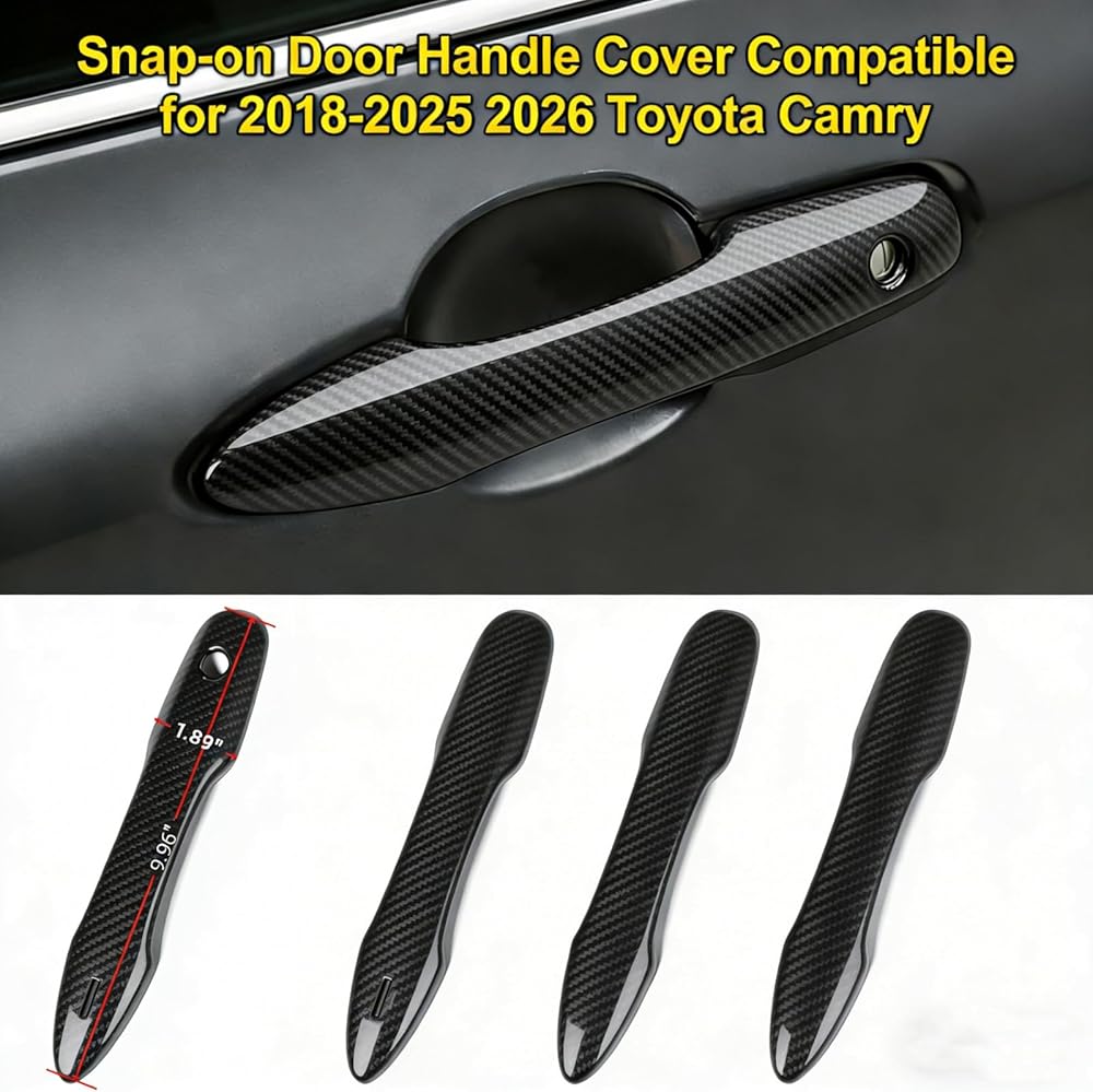 • Precision-engineered No Adhesive Snap-on Car Door Handle Cover Protector Compatible for Toyota 2018-2020 2021 2022 2023 2024 2025 2026 Camry 2019-2026 Corolla 2019-2022 Avalon 2016-2026 Prius 2020-2024 Venza Accessories, designed using exact OEM data to ensure a seamless, factory-like fit without any modifications or adhesives.