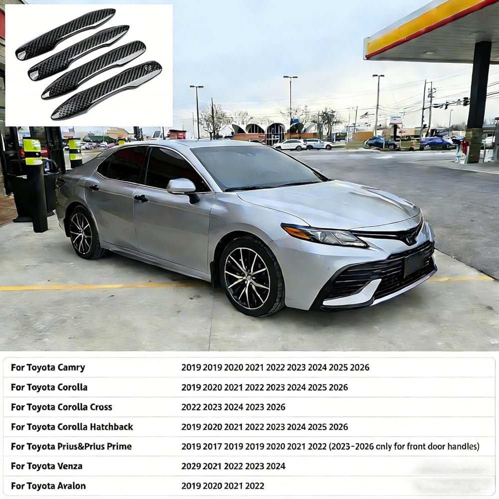غطاء حماية لمقبض باب السيارة متوافق مع Toyota 2018-2020 2021 2022 2023 2024 2025 2026 Camry 2019-2026 Corolla 2019-2022 Avalon 2016-2026 Prius 2020-2024 Venza Accessories (كربون)