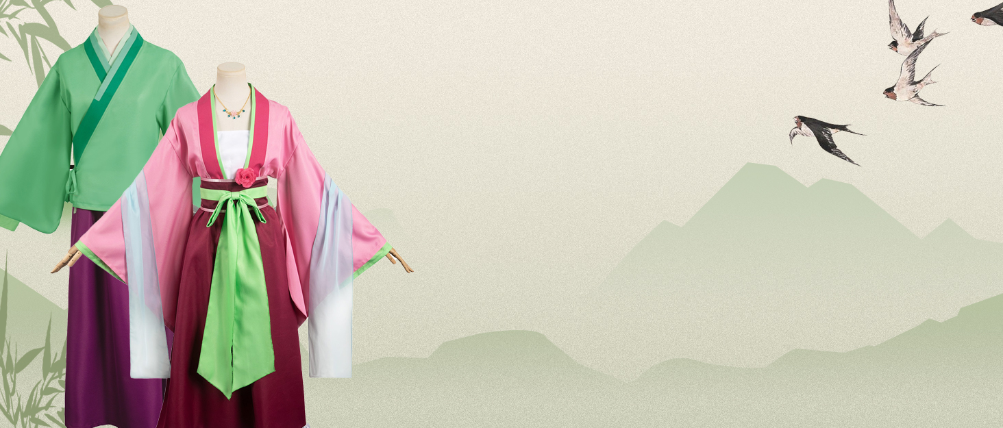 يشتمل على: مجموعة من فستان الرسوم المتحركة ماوماو، الذي يحتوي على بلوزة وردية مع فستان مبطن أبيض، وتنورة طويلة عنابي، وربطة عنق خضراء، ومعطف أزرق فاتح، وزوج من الأقراط والقلادة، ومشبك شعر من قطعتين، وإكسسوار ورد وردي داكن.