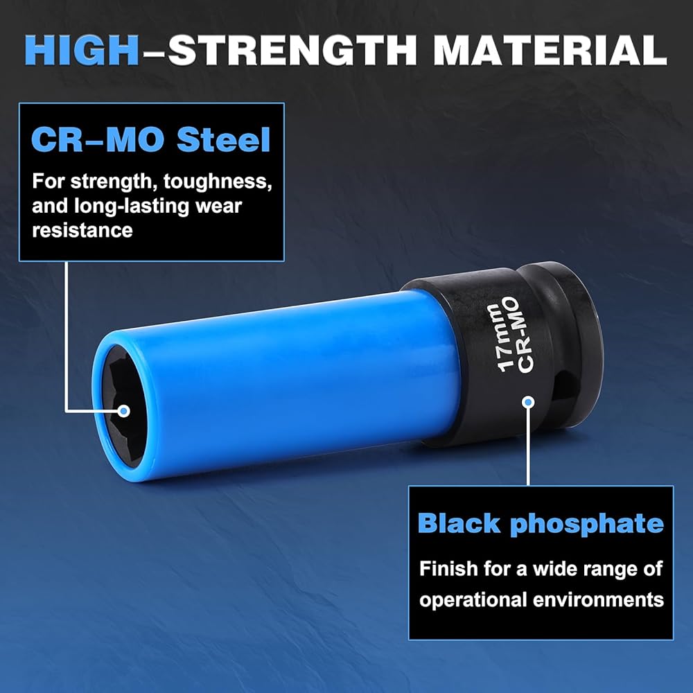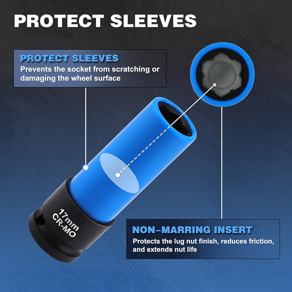 ✅【SCRATCH PROTECTION】Features a biue, protective sleeve around the socket which is designed to prevent scratching and marring of your wheels during maintenance