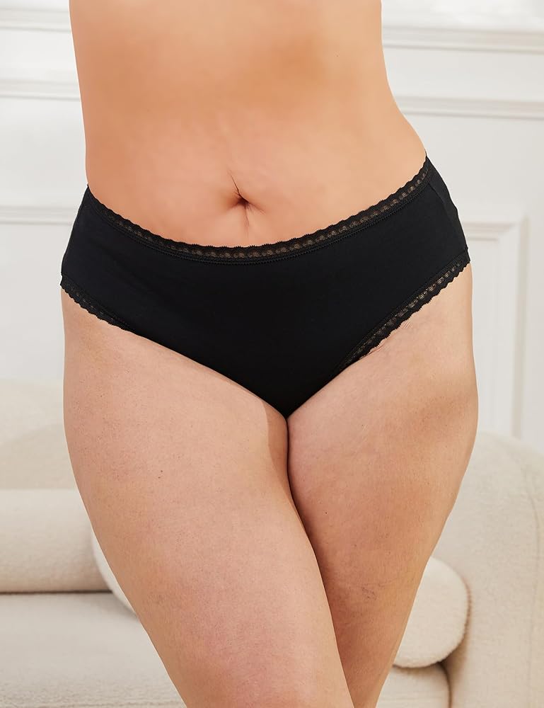 تفاصيل الدانتيل - حزام خصر من الدانتيل مع مرونة ناعمة يضمن ملاءمة آمنة دون الحفر أو التدحرج. تضيف زخرفة الدانتيل الجميلة لمسة أنيقة إلى تصميم الملابس الداخلية الكلاسيكي هذا،