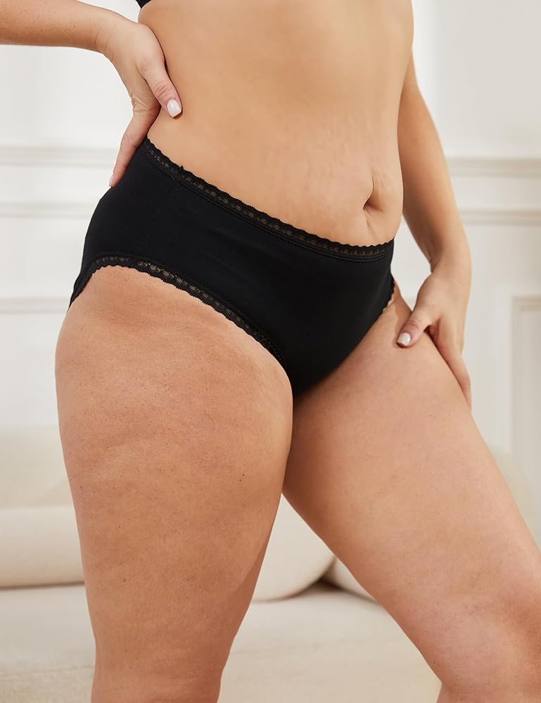 خامة مزيج القطن - ملابس داخلية قطنية عالية القطع من LIQQY مصنوعة من 95% قطن ناعم ومسامي + 5% ألياف لدنة مع تفاصيل من الدانتيل الرقيق على طول الحواف من أجل النمط الأنثوي والراحة