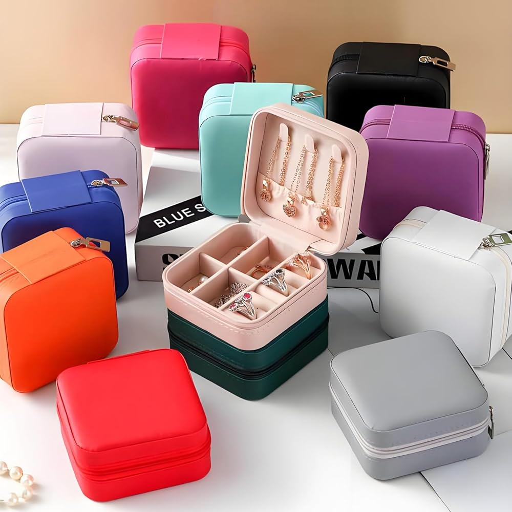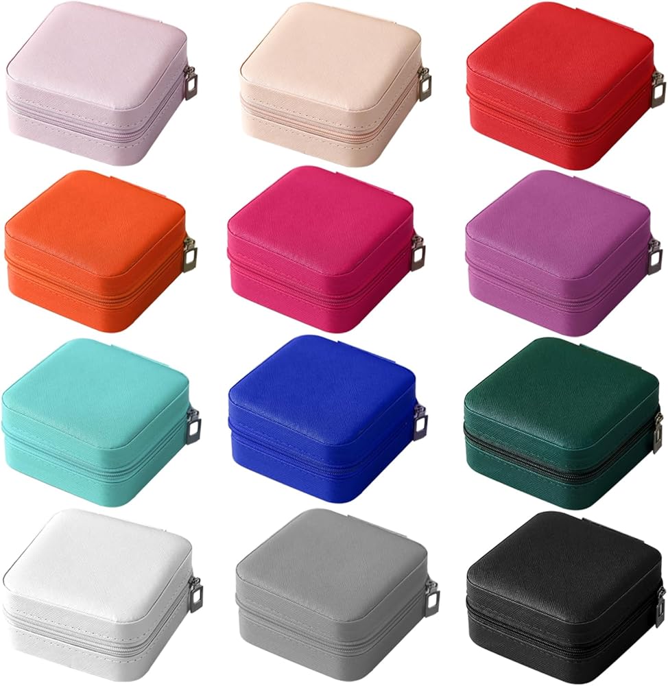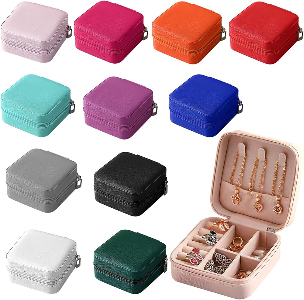 -Package included: 12pcs portable travel jewelry organizer display boxes case in difference colors for Womens ladies, idea for party gifts, wedding gifts, bridesmaid gifts, graduation gifts, birthday party gifts. Jewellery organizer for storage earrings, necklaces, rings, watches, lipsticks, earrings and other small jewelry accessories.