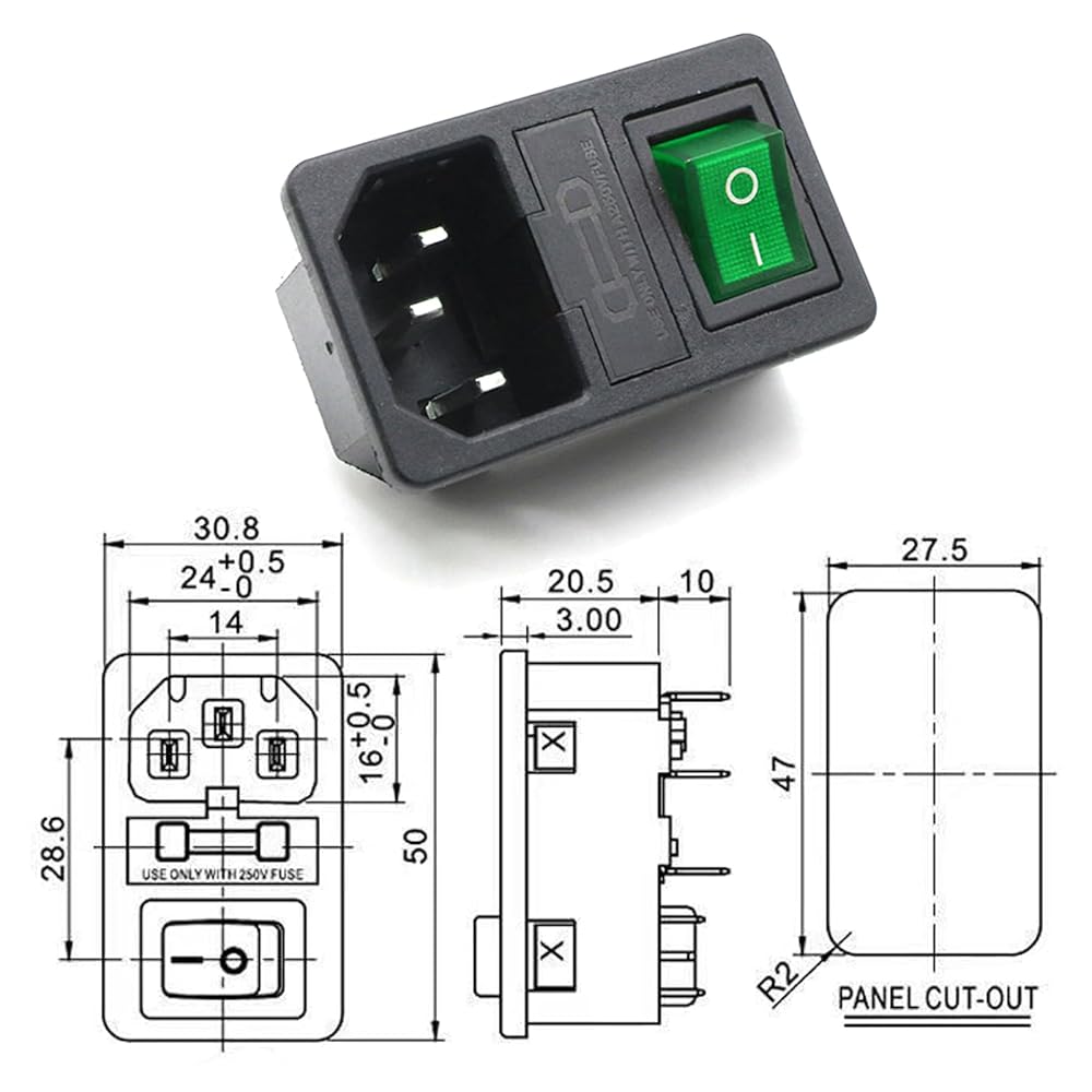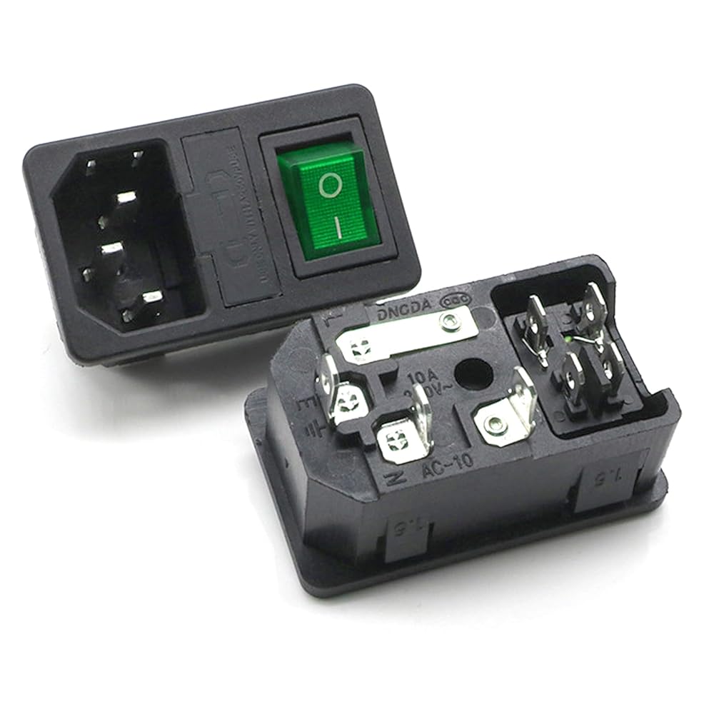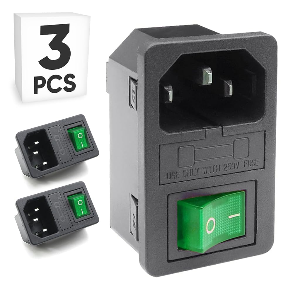 3-Pack Panel Mount AC Power Inlet Module with Fuses, Rocker Switch & Green Light, IEC C14 Socket 250V 10A, Snap-in Installation for Electrical Enclosure