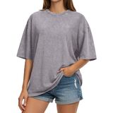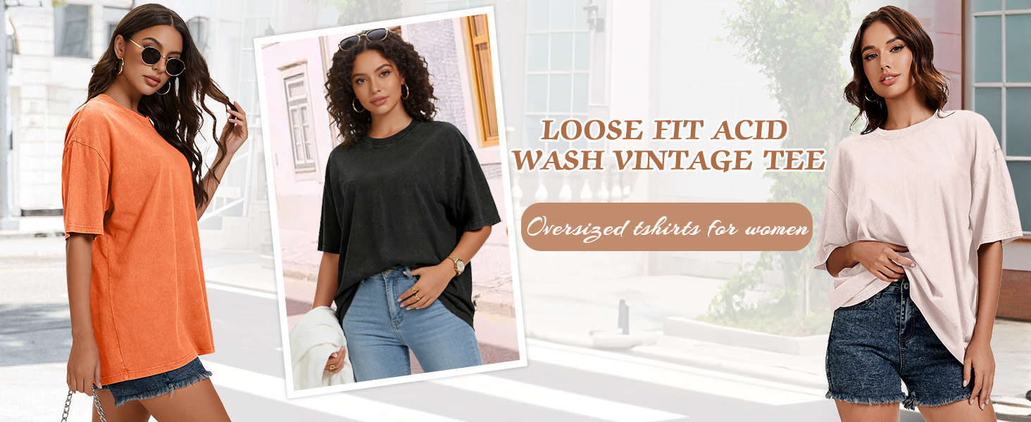 التصميم: تم تصميم التي شيرت النسائي المغسول بالحمض بأكمام قصيرة وبنية عامة مغسولة للملابس تخلق نمطًا قديمًا، مما يظهر إحساس الموضة القوي للشباب ويولد توترًا بصريًا قويًا