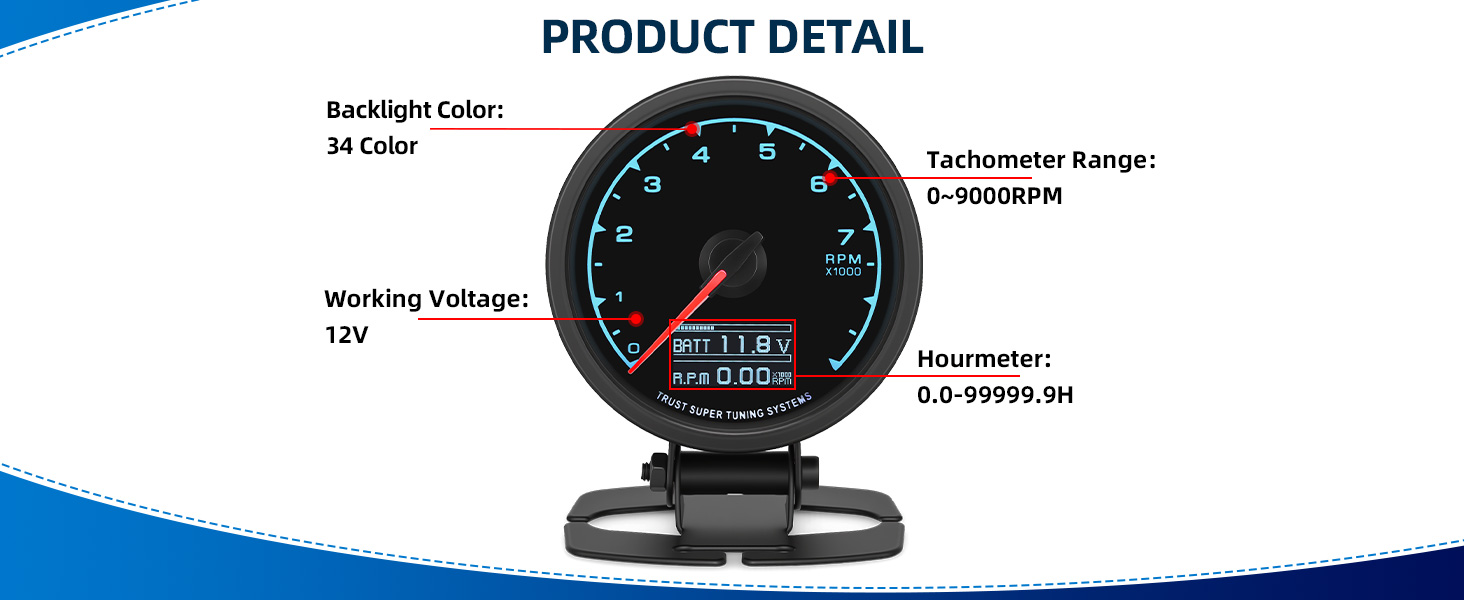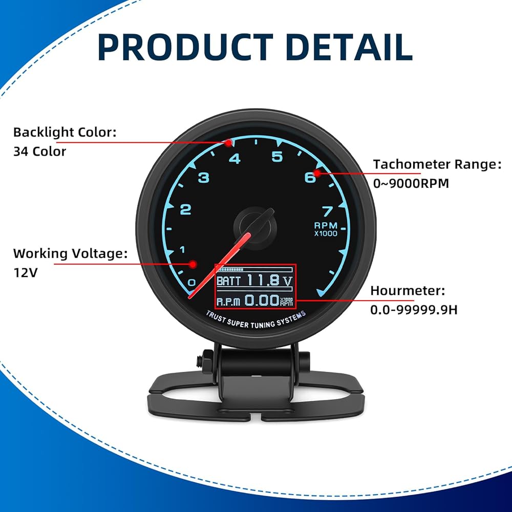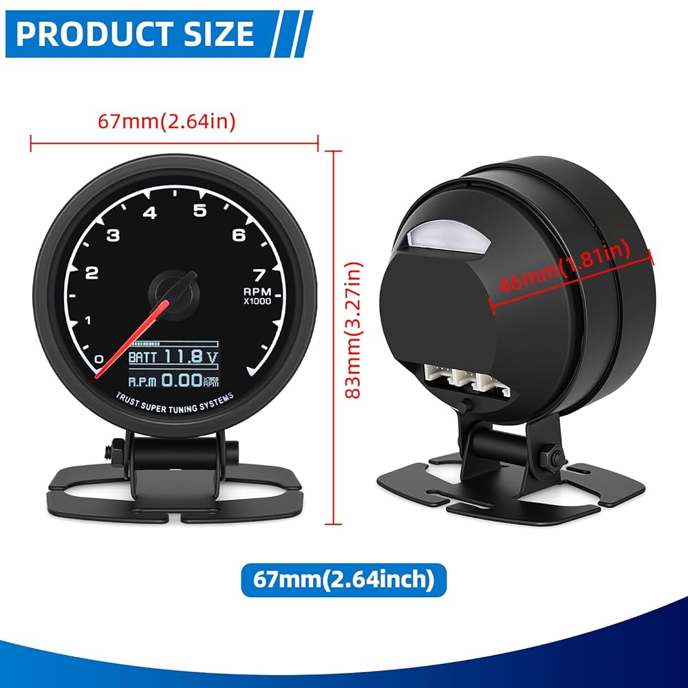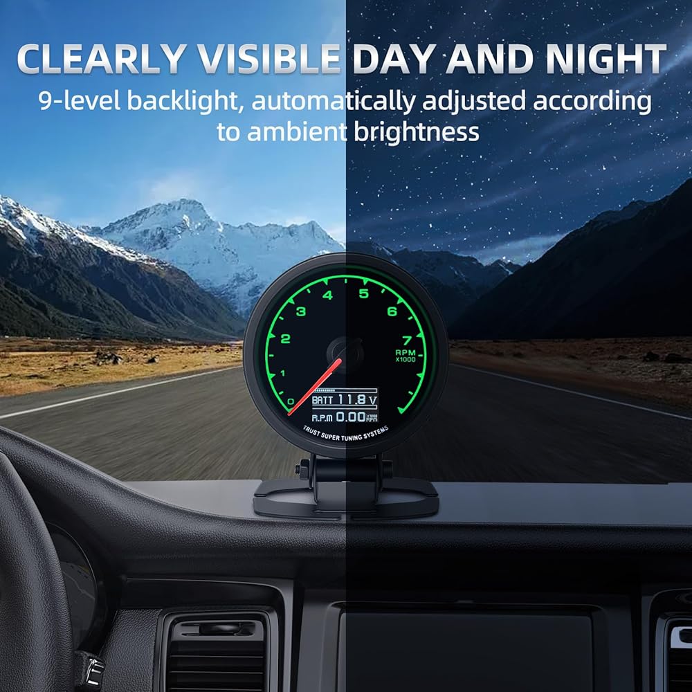【الوظيفة】مقياس سرعة الدوران دورة في الدقيقة هو 60 مم (2.5 بوصة)، سواء كان تحت وهج ضوء النهار الساطع أو ظروف الإضاءة المنخفضة للقيادة الليلية، مما يضمن رؤية واضحة في جميع ظروف القيادة.