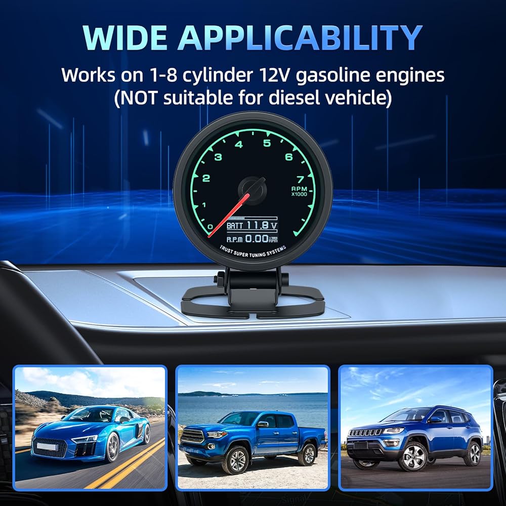 【الميزات: مقياس سرعة الدوران مناسب لمحرك بنزين السيارة 12 فولت، مناسب لمحركات الأسطوانات 4/6/8. يعرض مقياس AUTO RPM الدقة والثبات، واستهلاك منخفض للطاقة