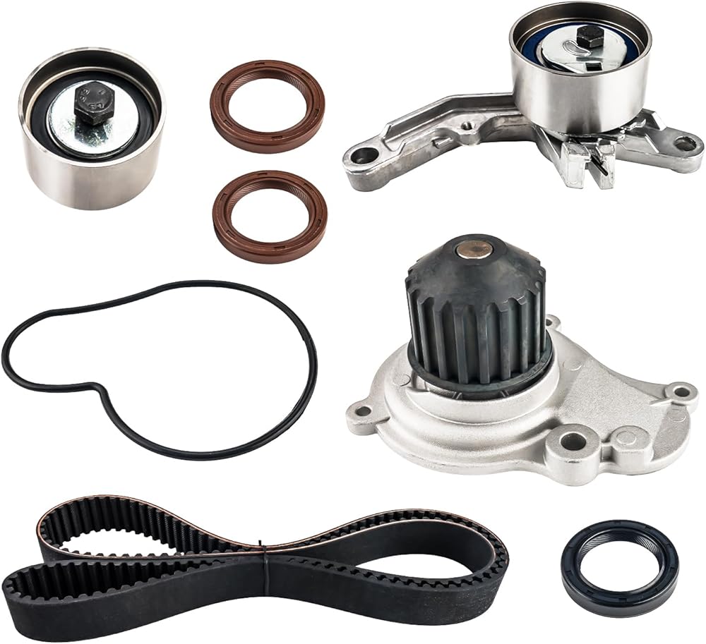 تتضمن العبوة - 1 حزام توقيت، 1 شداد حزام التوقيت بيرينغ، 1 محمل تباطؤ حزام التوقيت، 1 شداد هيدروليكي، 2 أختام عمود الحدبات، 1 ختم العمود المرفقي، 1 مضخة مياه مع حشية