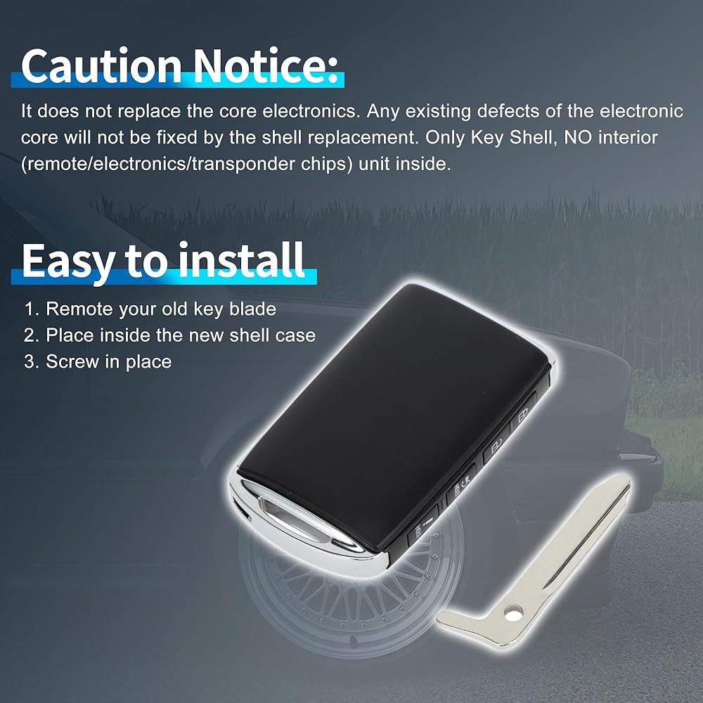 خصائص المنتج: ملاحظة تحذيرية: لا يحل محل الأجهزة الإلكترونية الأساسية. لن يتم إصلاح أي عيوب موجودة في القلب الإلكتروني عن طريق استبدال الغلاف. غلاف المفتاح فقط، لا توجد وحدة داخلية (جهاز تحكم عن بعد/إلكترونيات/رقائق الإرسال والاستقبال) بالداخل.