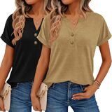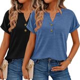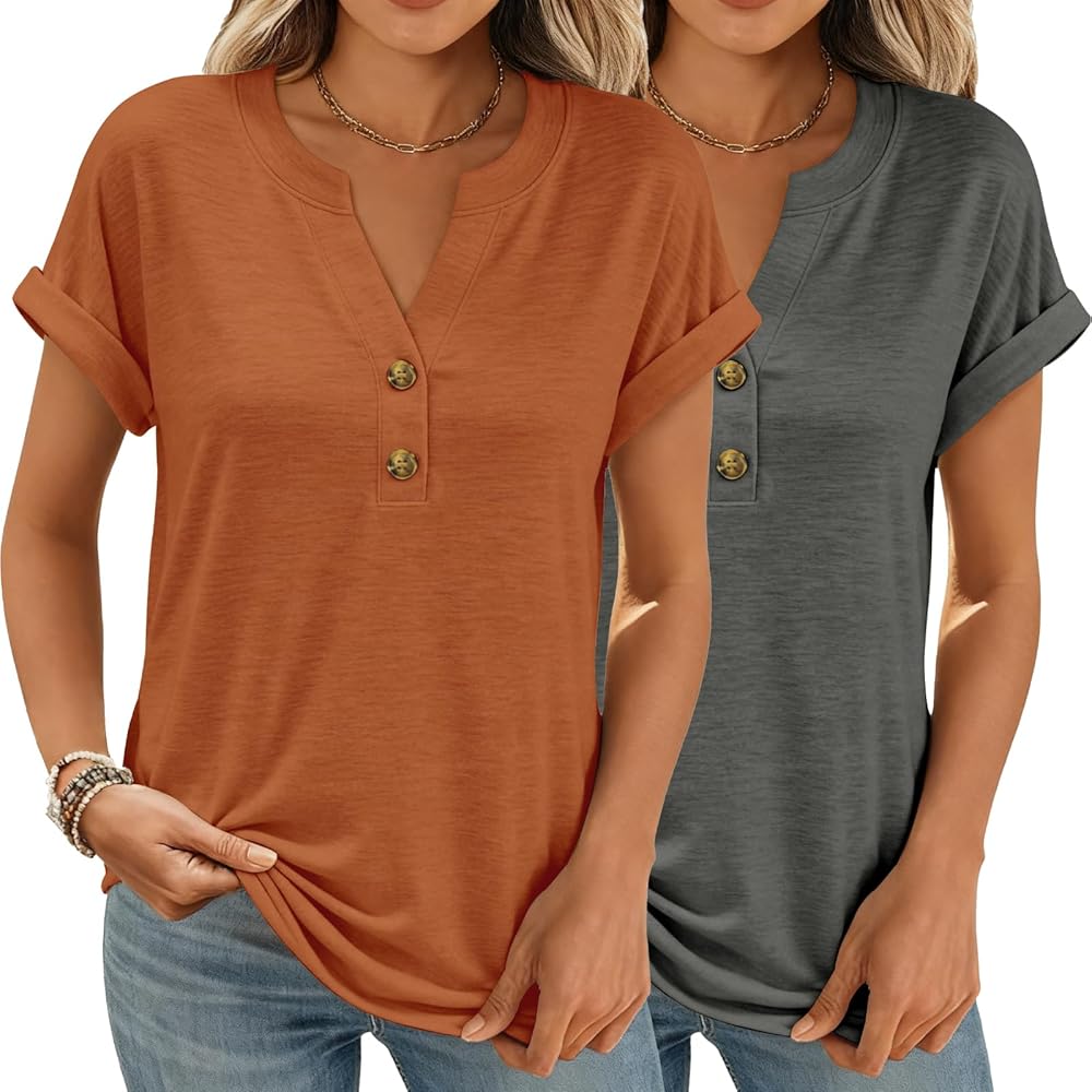 With a chic V-neck and two-button detail at the chest, these shirts add a polished, versatile touch to your outfit.