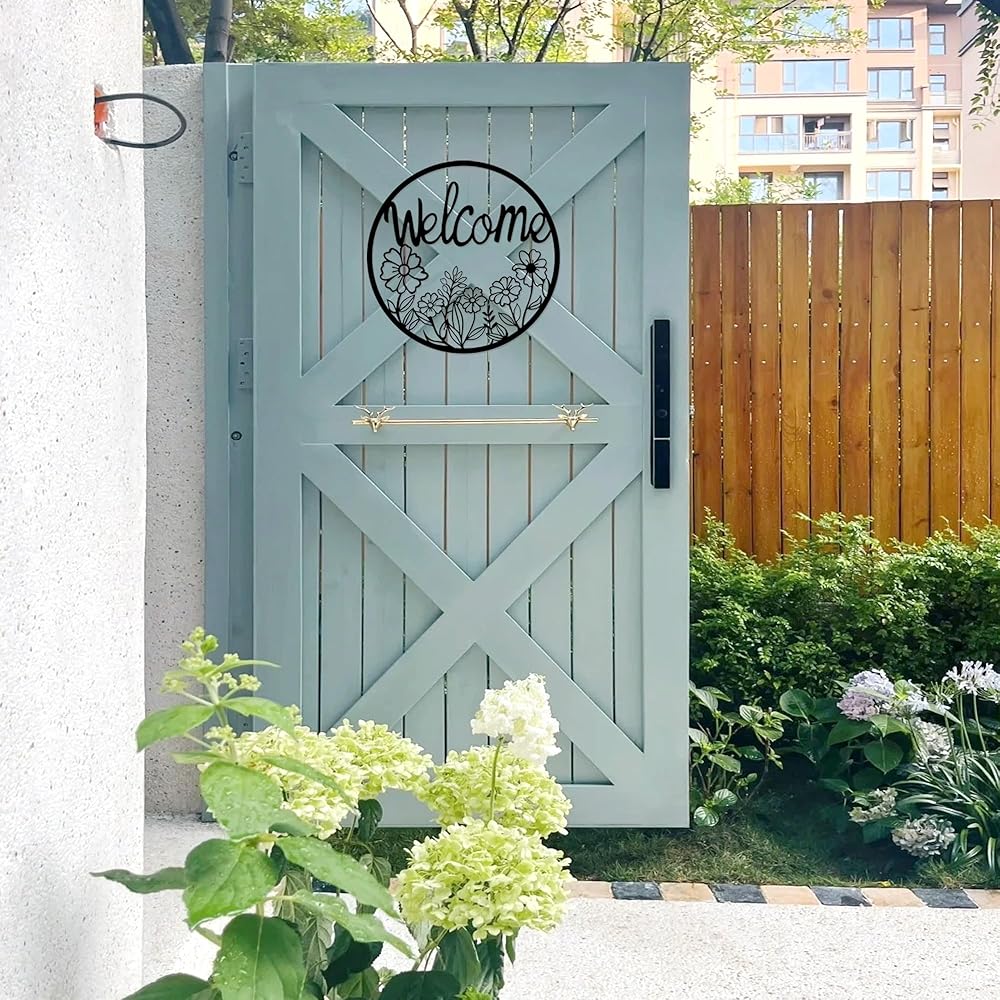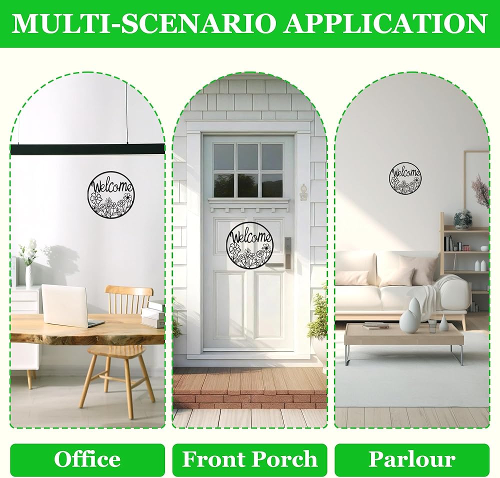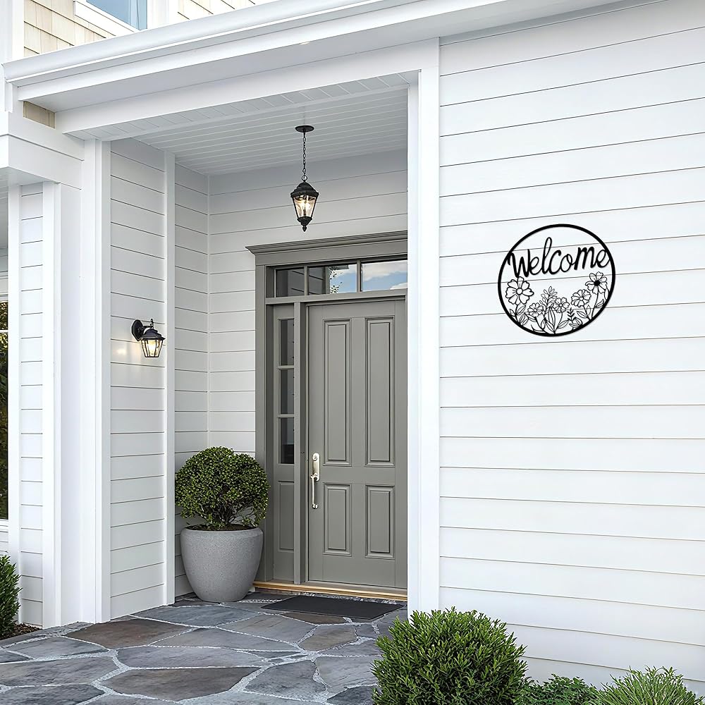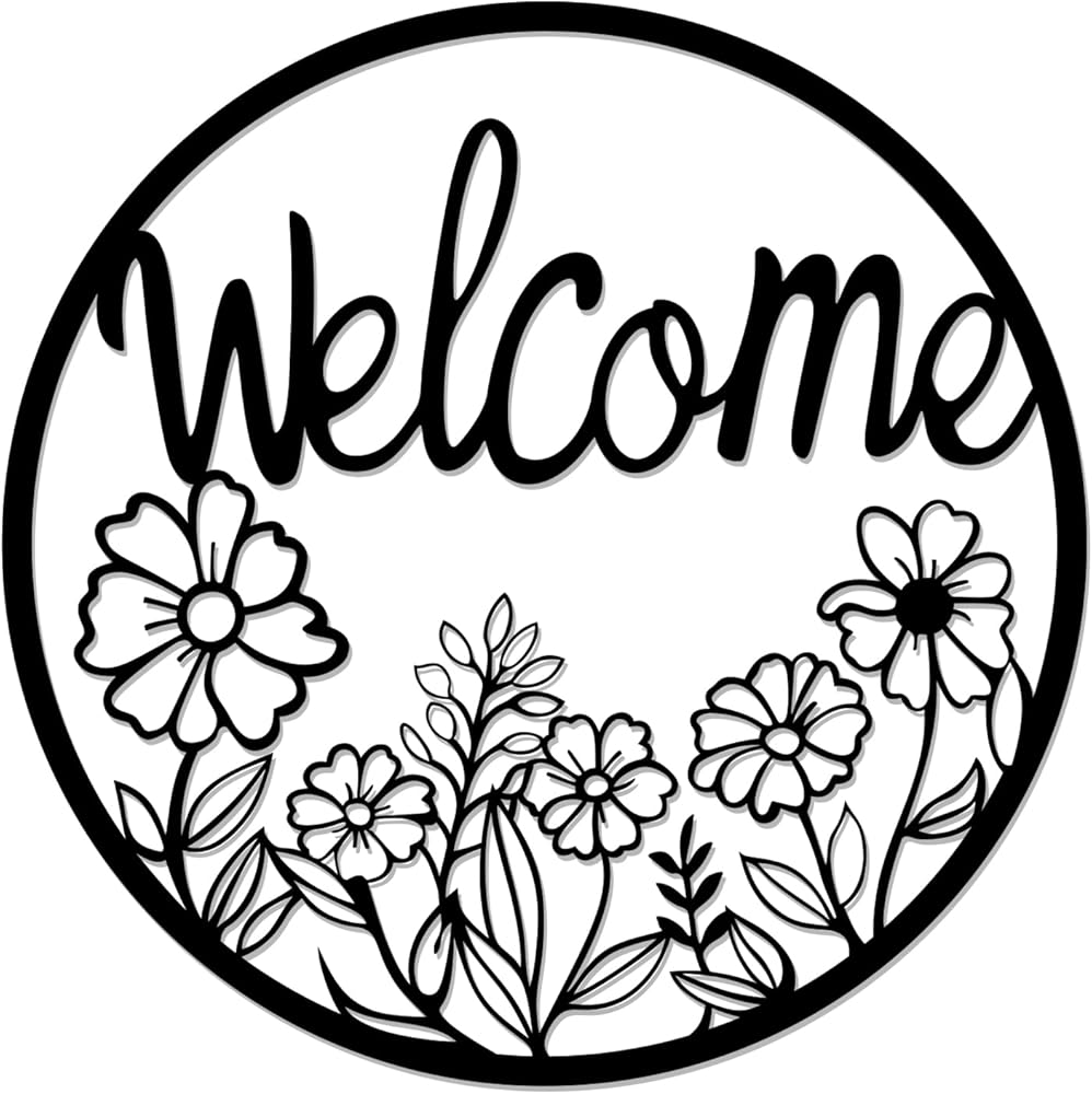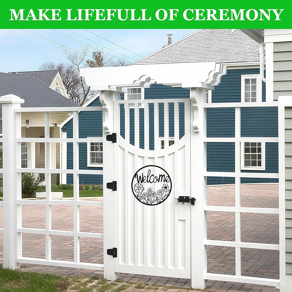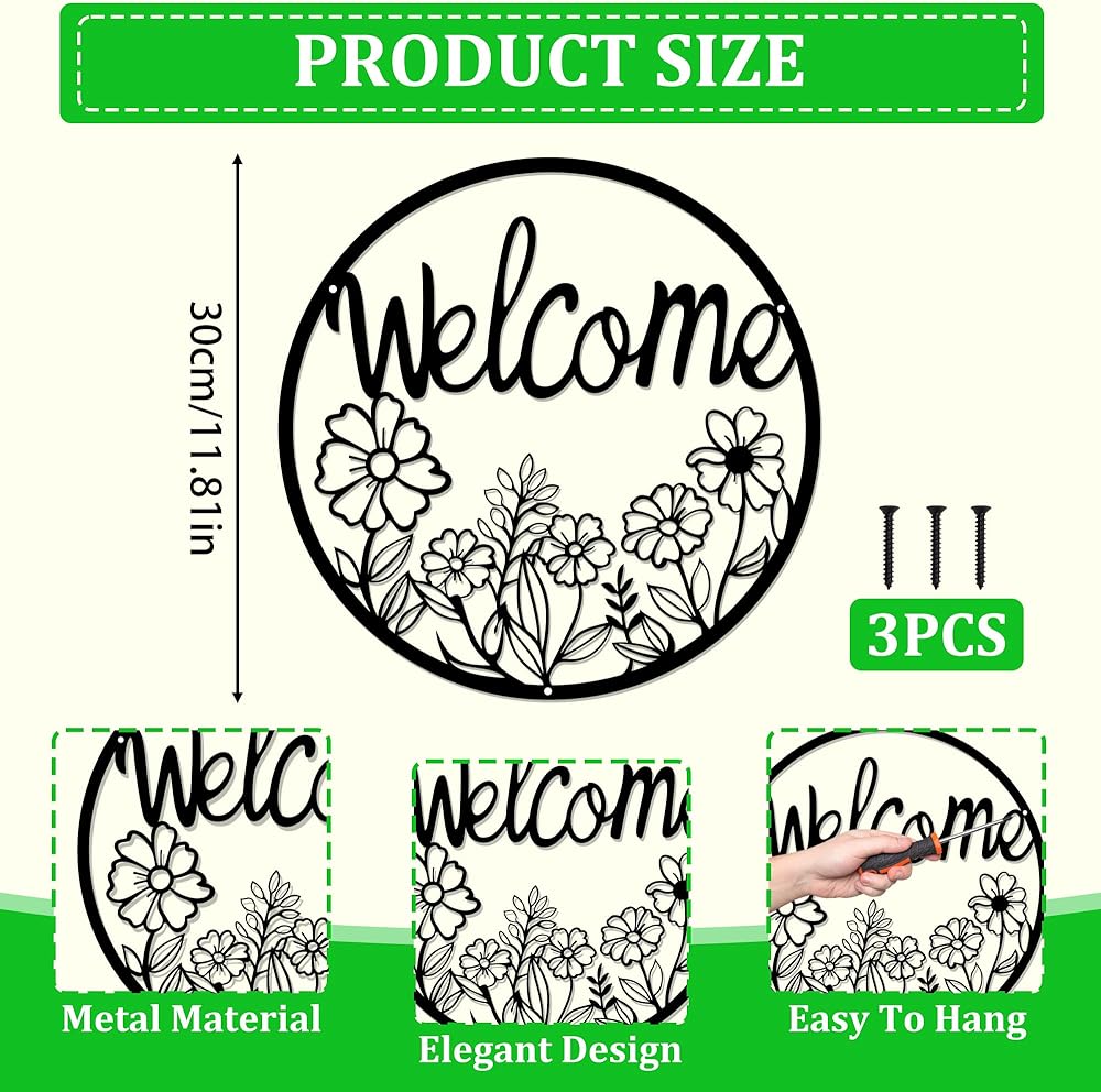 【بناء حديد متين للاستخدام في الهواء الطلق】مصنوعة من معدن قوي ومطلية بطبقة سوداء مقاومة للطقس، وقد صُممت علامة الترحيب الخارجية هذه لتدوم في جميع المواسم. مثالي للأبواب الأمامية، أو الباحات، أو الأسوار، أو الجدران الداخلية حيث تجتمع المتانة مع السحر.