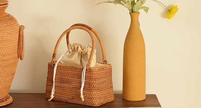 هدية: ستكون حقيبة اليد المصنوعة من الخيزران هدية مثالية للنساء في أعياد الميلاد والذكرى السنوية والمهرجانات وما إلى ذلك، وستكون هدية فريدة ولافتة للنظر لأصدقائك أو عائلتك.