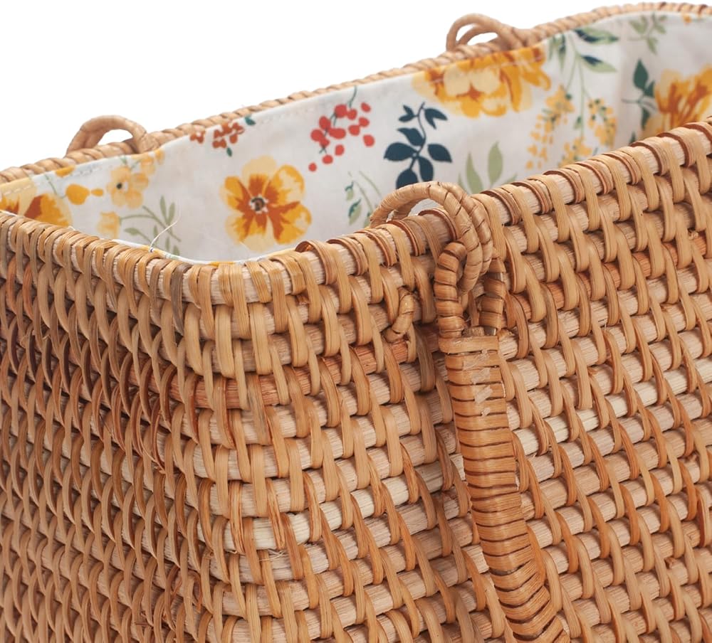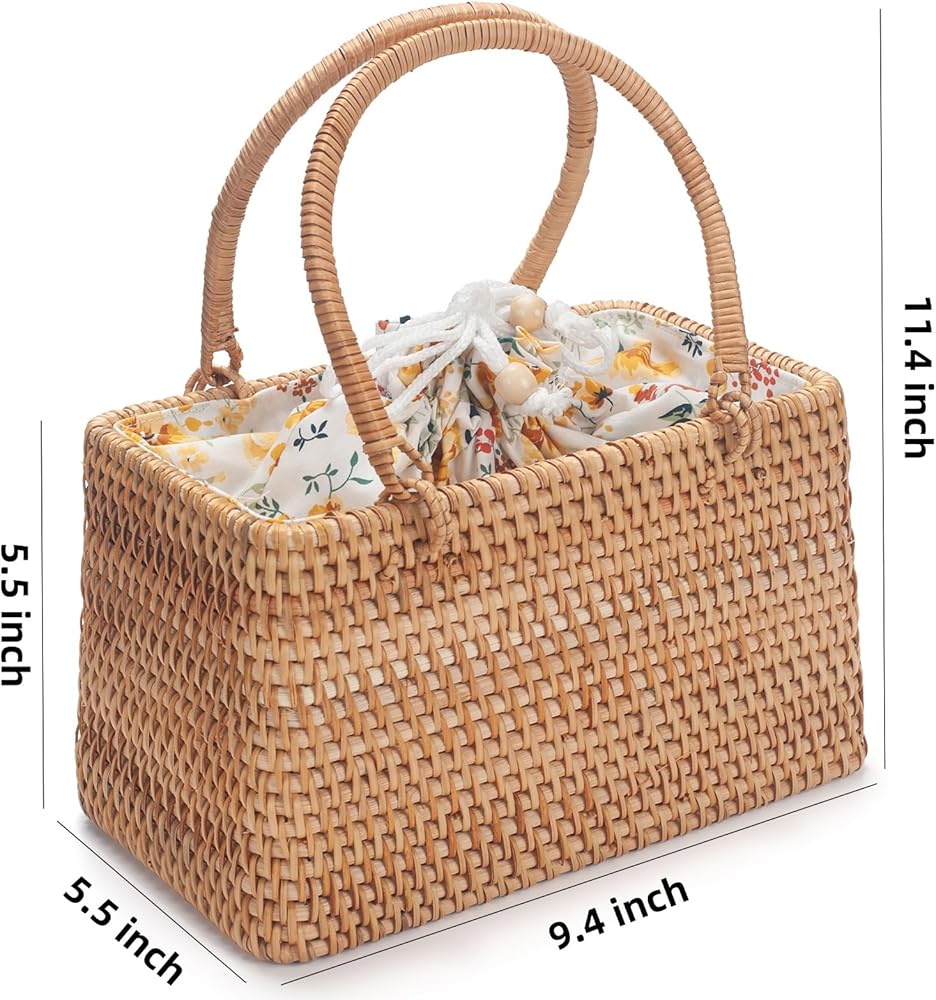 التصميم: تم تصميم حقيبة الشاطئ الصيفية هذه ببطانة من القماش الناعم، يمكنك شد الرباط للحفاظ على مقتنياتك آمنة. وستحمي بطانة القماش الناعمة متعلقاتك من الغبار. المقابض تجعل من السهل حمل حقيبتك المصنوعة من الخيزران.