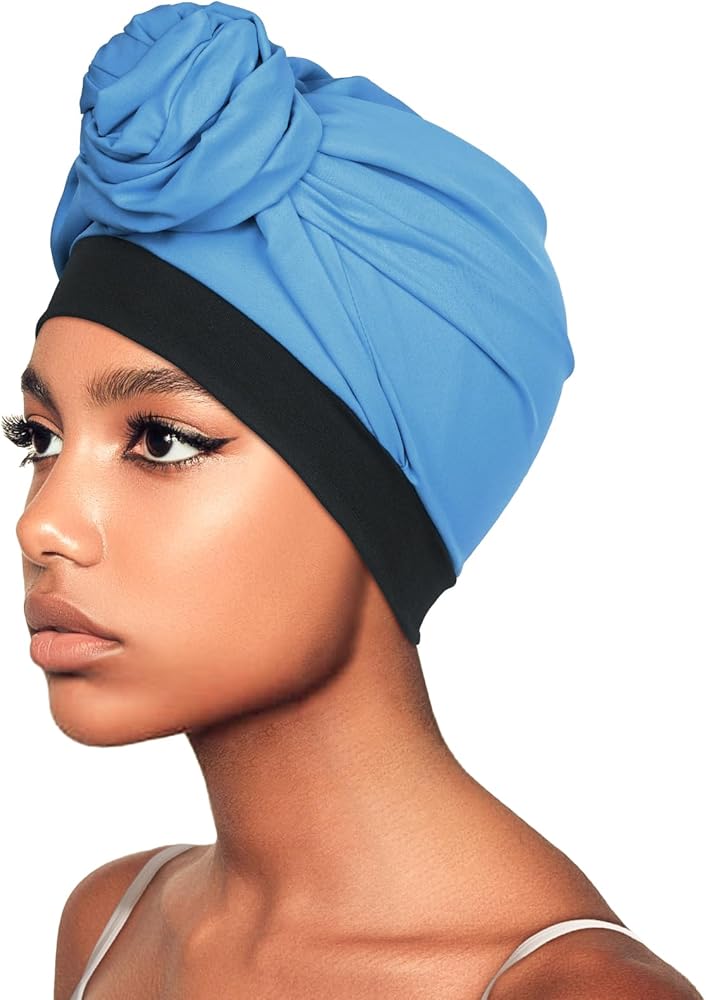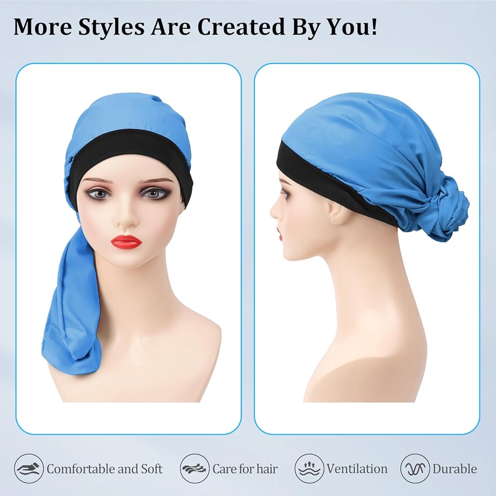 غطاء رأس عمامة قابل للتعديل من FADACHY وقلنسوة شعر للنساء، أغطية رأس ناعمة من العلاج الكيميائي، قبعة صغيرة مطاطية باللون الأزرق