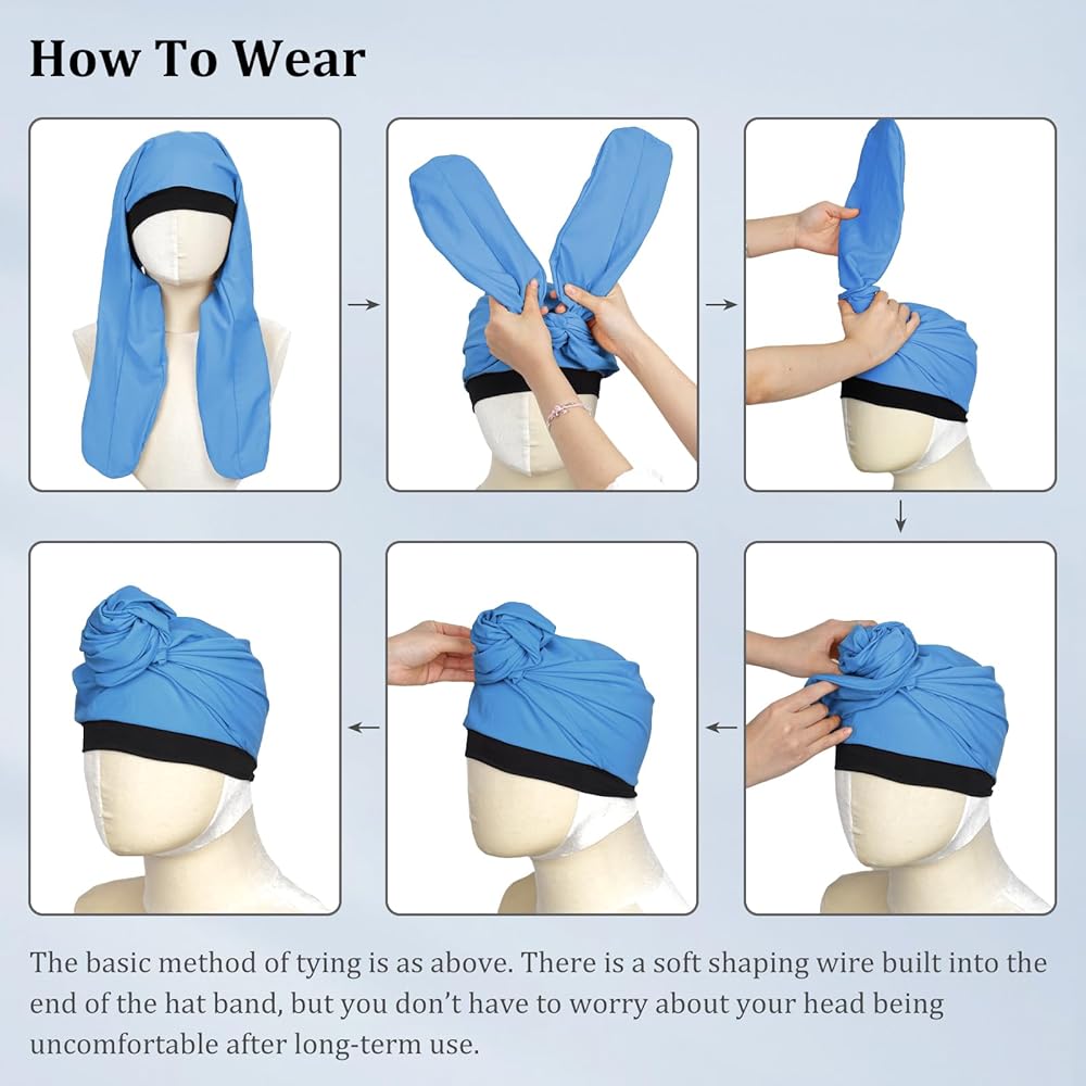 • 🎁【تصميم أنيق】: توجد أسلاك ناعمة وقابلة للتشكيل داخل الحزامين، والتي يمكنها ضبط إحكام المنديل لضمان ارتداء مريح. اعتمادًا على الطرق المختلفة لربط العقد، يمكن تعديل نمط غطاء الرأس بسهولة. سواء كانت قوسًا بسيطًا، أو عقدة ملتوية، أو ربطة عنق فضفاضة، فإن قبعة العمامة لا يمكن أن تتناسب مع الملابس المختلفة فحسب، بل تعزز أيضًا الشعور بالموضة.