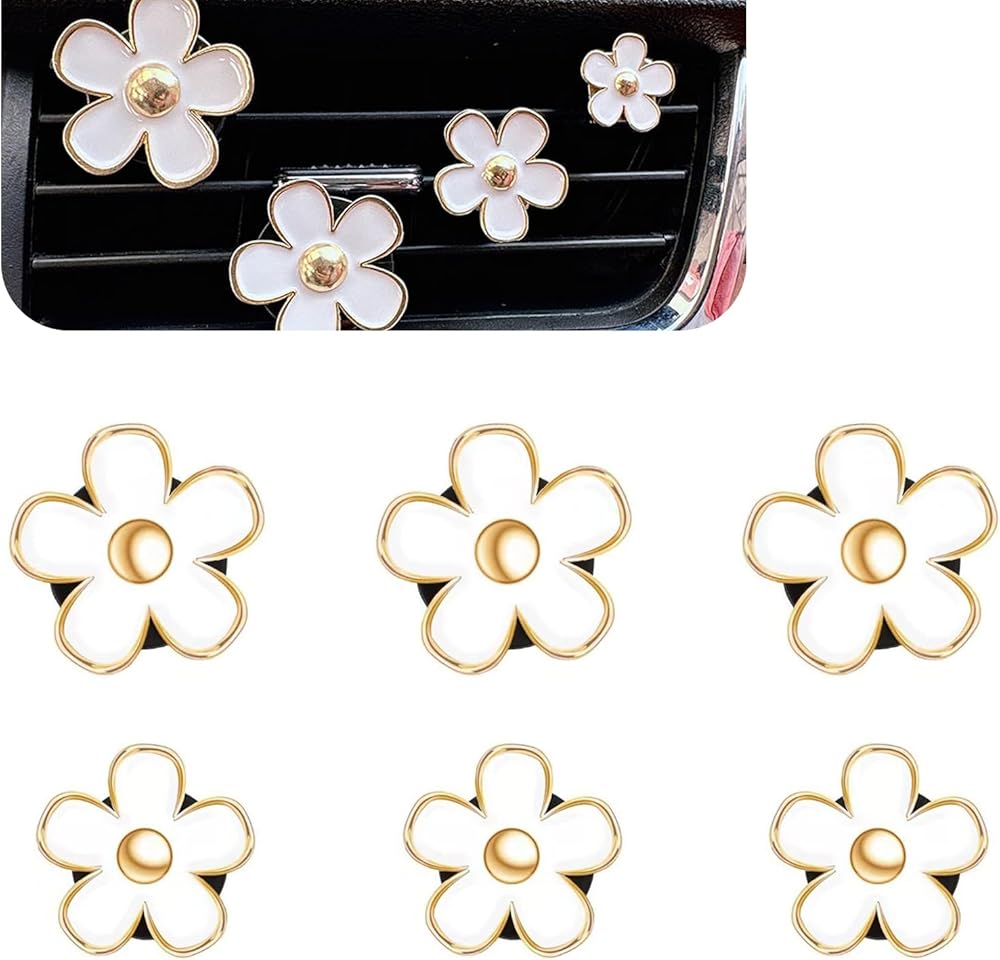 6 قطع صغيرة من زينة فتحة تكييف الهواء على شكل زهرة الأقحوان، علاج عطري على شكل زهرة صغيرة مبتكرة، تركيب سريع لمشبك فتحة تهوية الهواء، قطع غيار السيارات، مناسبة لمعظم السيارات (أبيض)