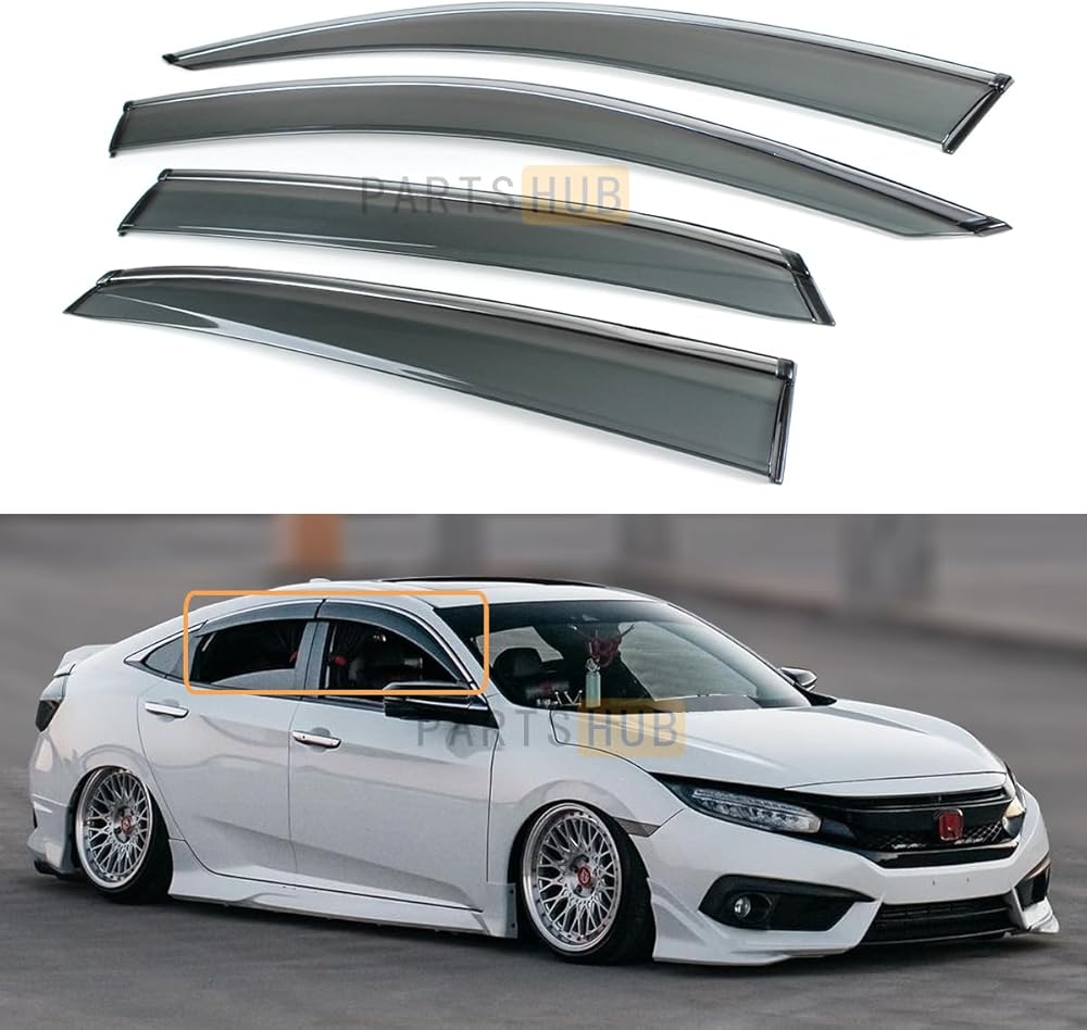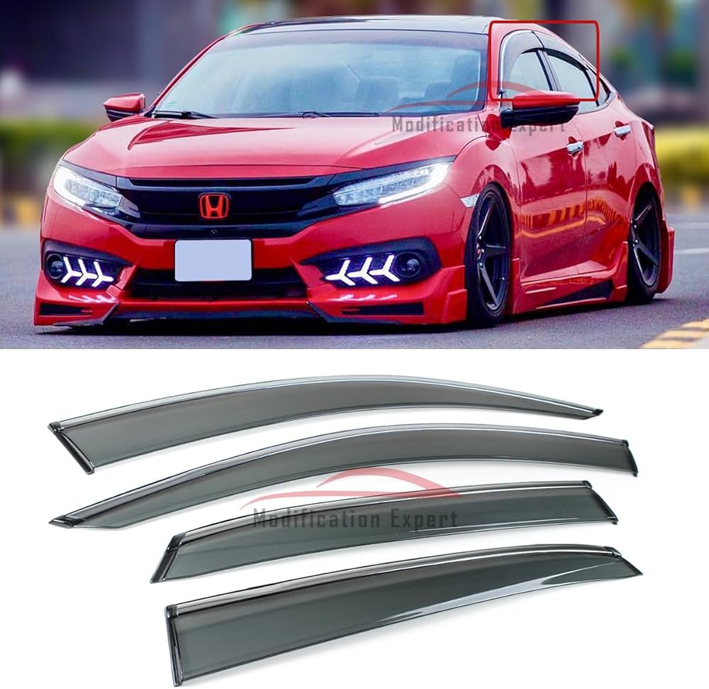 يناسب 2016-2021 هوندا سيفيك 4 أبواب سيدان JDM تقليم الكروم دخان ملون نافذة أقنعة حراس المطر منحرف