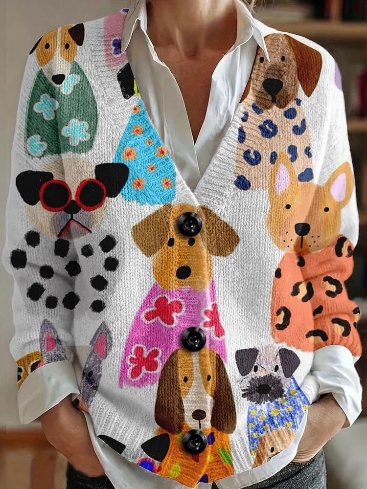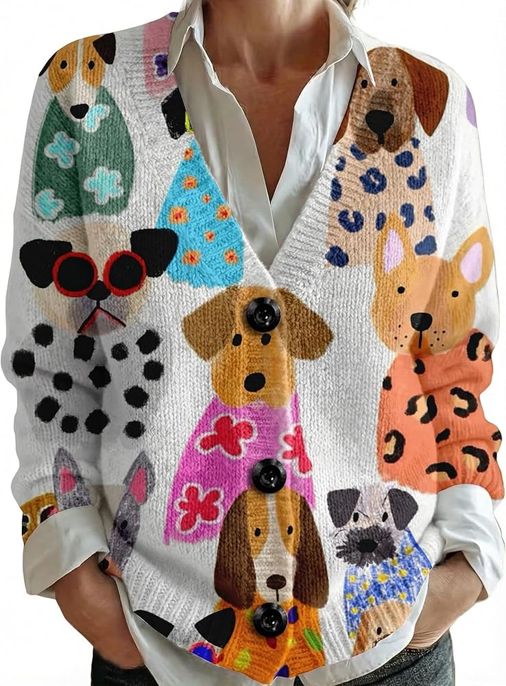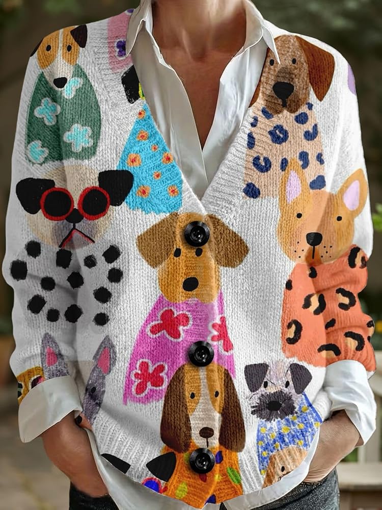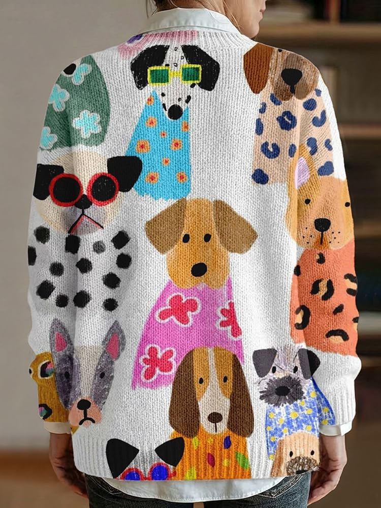 Add artistic flair to your wardrobe with this plus size animal print cardigan. Featuring an elegant full-length artistic animal pattern, this open-front sweater combines style with comfort. The flattering V-neckline and contrasting black buttons create a polished look, while the soft fabric ensures all-day comfort. This versatile layer is suitable for adding a unique touch to casual outings, relaxed vacations, or special dates.