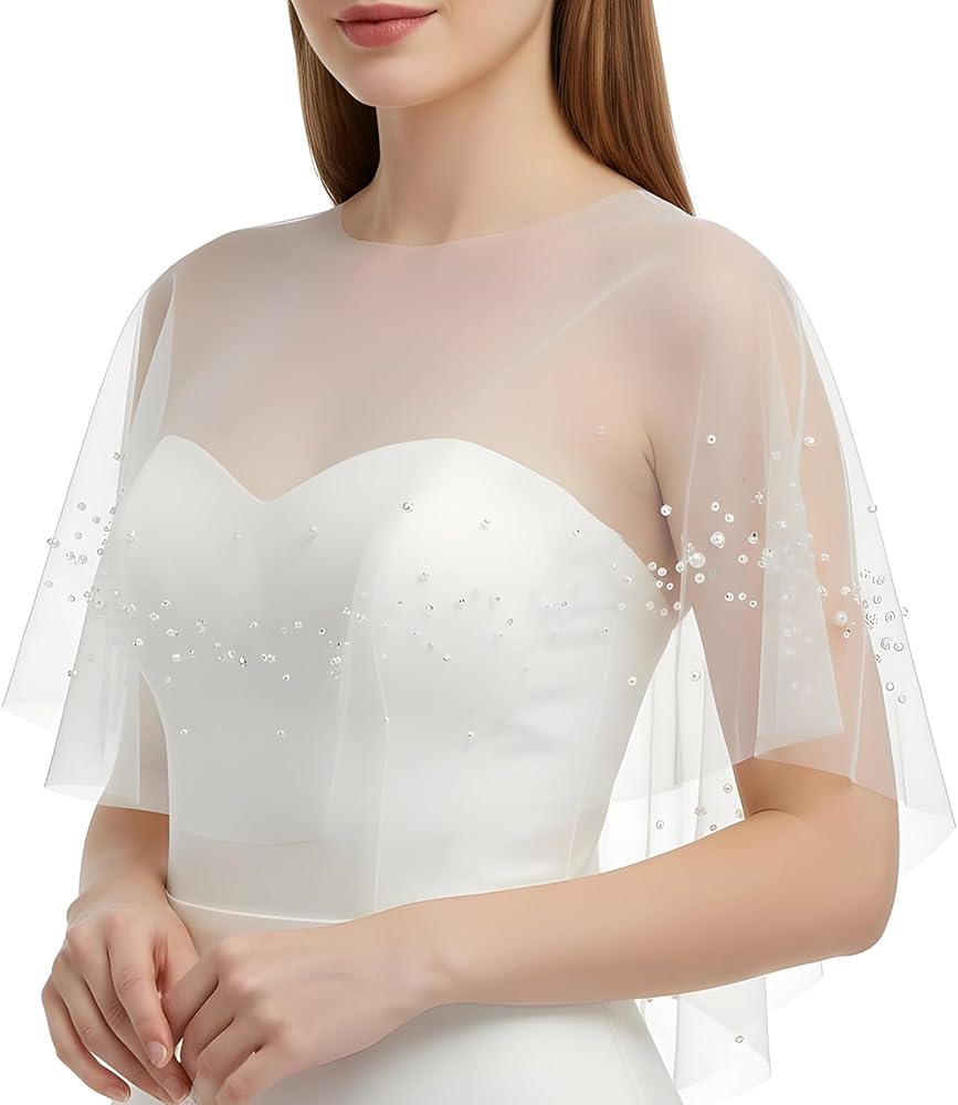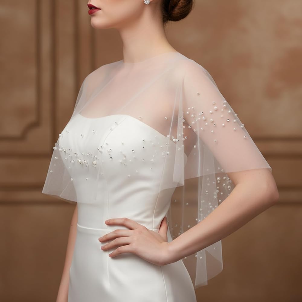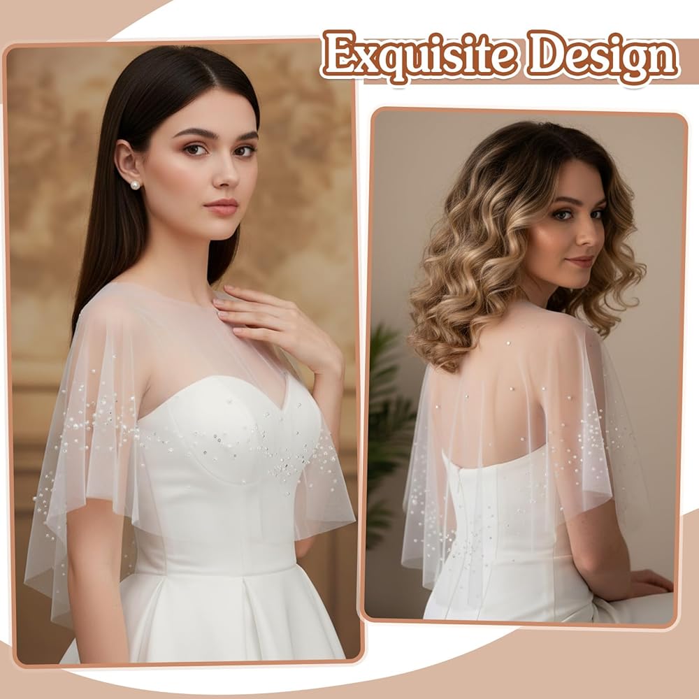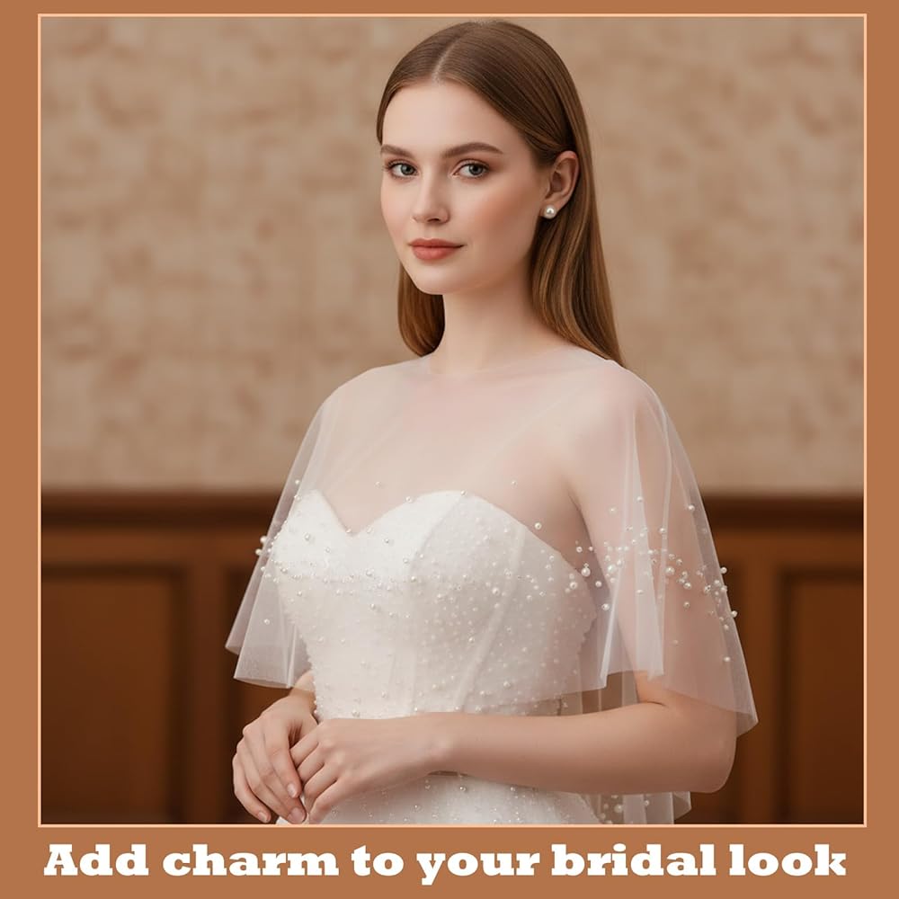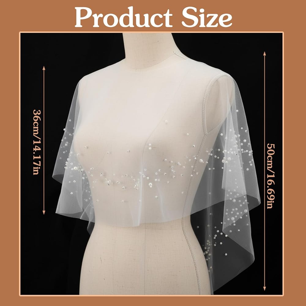 • 【Superior Material & Craft】Crafted from lightweight and breathable tulle with delicate pearl embellishments, this bridal cape offers a soft, silky touch. The exquisite details and quality construction ensure a comfortable fit while enhancing your overall bridal or formal ensemble with its gentle drape.