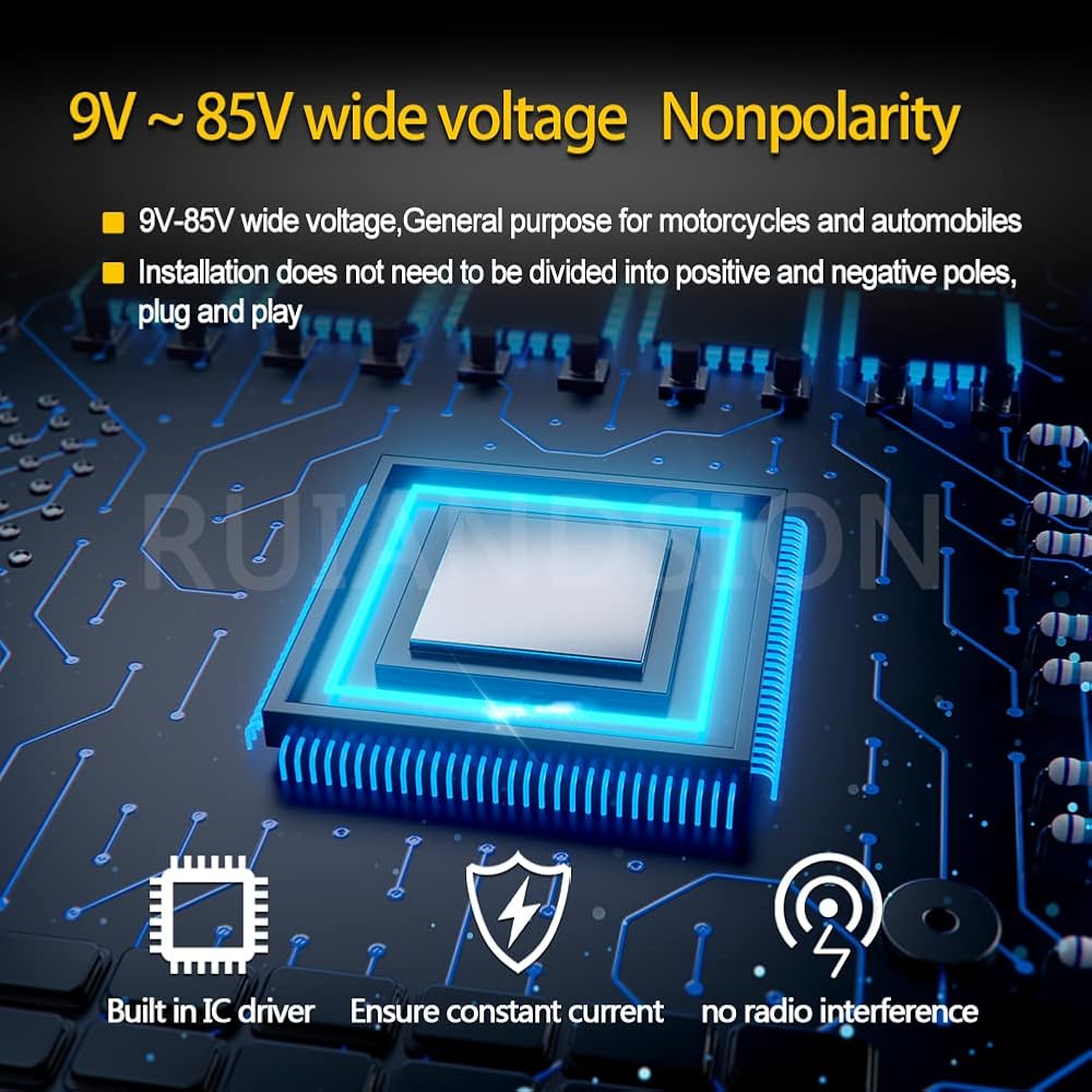 9-85V wide voltage design, Suitable for motorcycles, motos, ATVs, UTVs, scooters, trucks, and most vehicles.