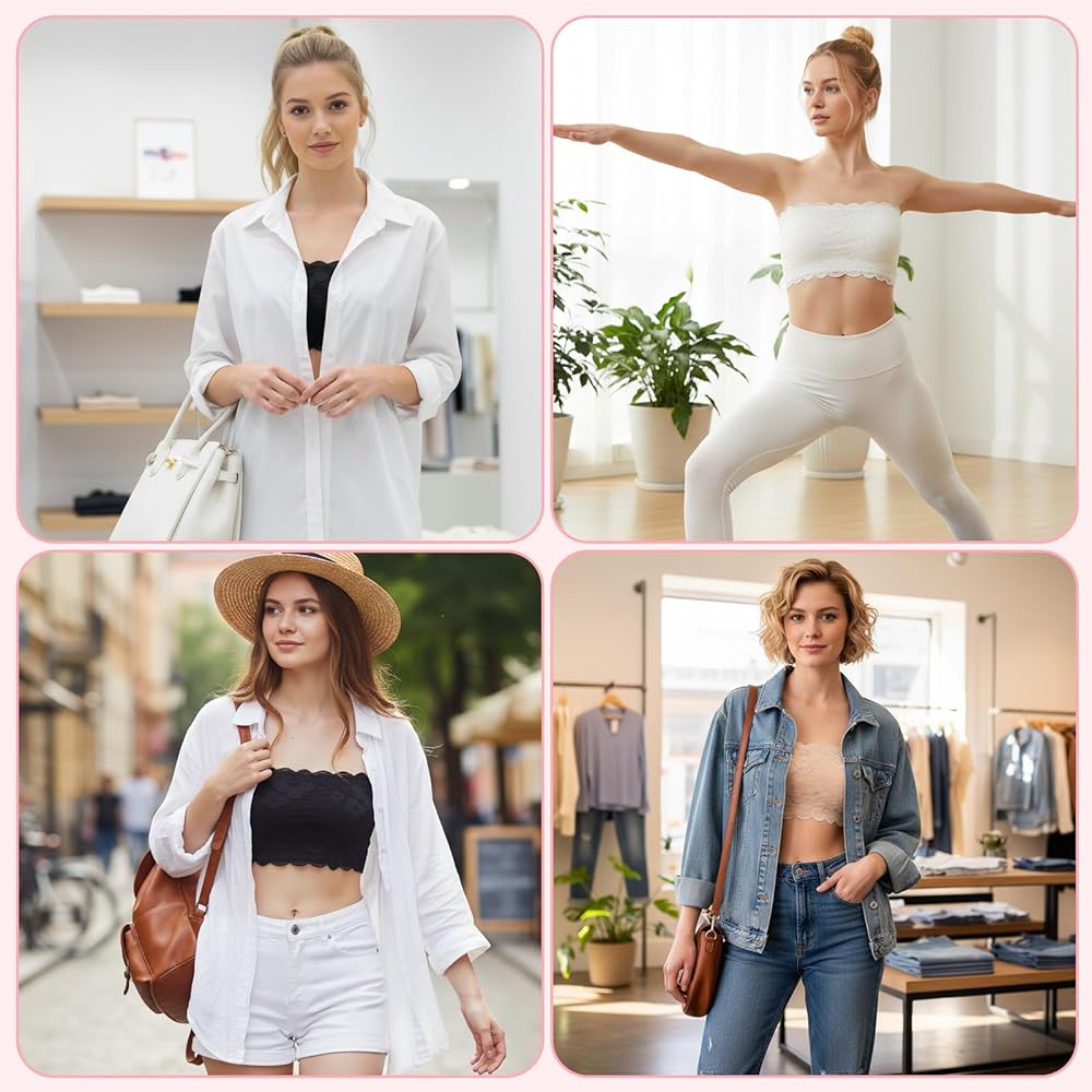 • 【Elegant Design】This strapless and seamless lace bandeau top offers an elegant look under any outfit. The floral lace pattern adds a touch of sophistication, making it perfect for both casual and formal occasions.