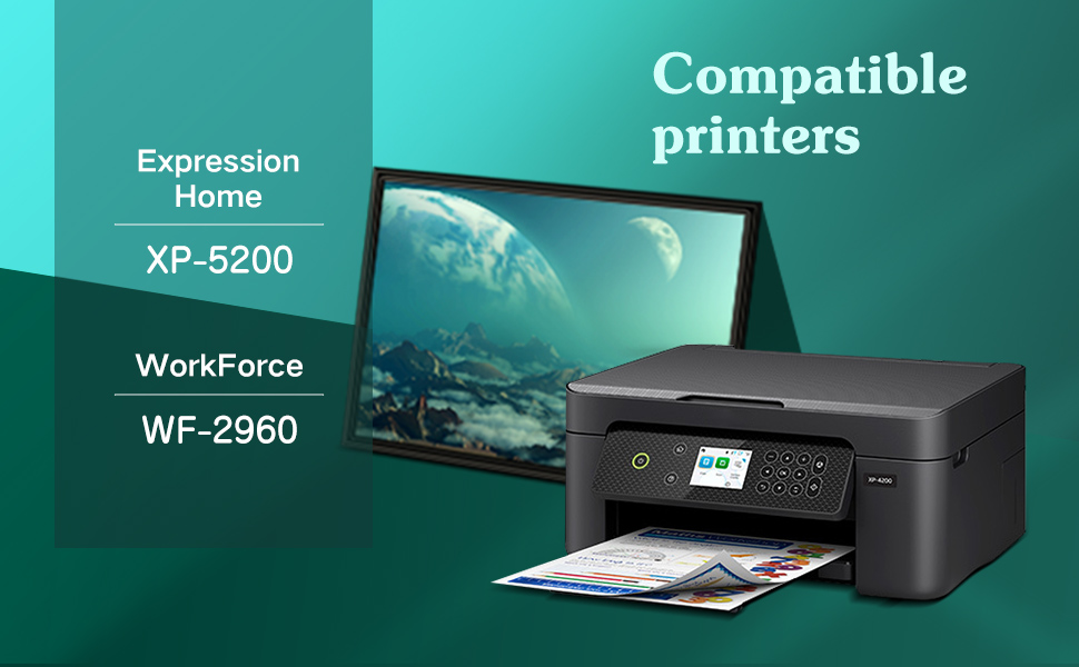 • الطابعات المتوافقة: لطابعة Epson Expression Home XP-5200، WorkForce WF-2960، لخراطيش الحبر Epson XP-5200، لخراطيش الحبر Epson WF-2960