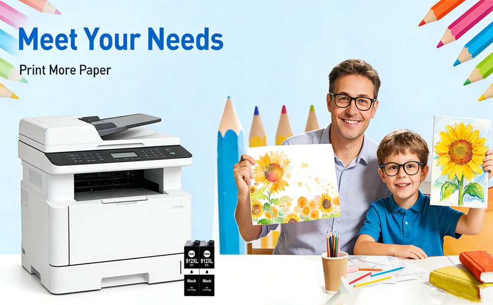 - --بالنسبة للطابعة المتوافقة مع اللون الأسود 812XL: كل مجموعة من خراطيش الحبر 812 XL متوافقة تمامًا مع طابعات Canon.