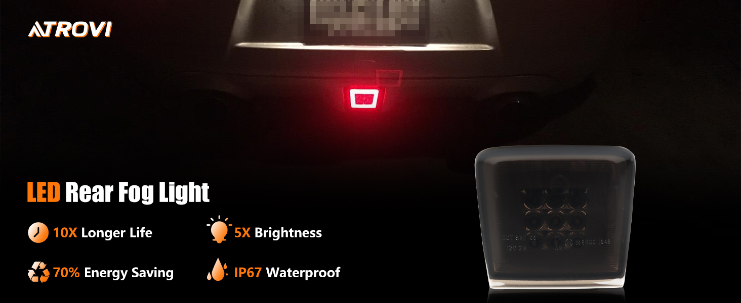 【سلامة معتمدة ودعم موثوق به】: مصباح الضباب الخلفي LED الخاص بنا معتمد من DOT/SAE، ويلبي معايير السلامة الصارمة لراحة البال. تأتي كل مجموعة مع ضمان لمدة 12 شهرًا وإمكانية الوصول إلى دعم العملاء على مدار الساعة طوال أيام الأسبوع. في ATROVI، نحن ملتزمون بتقديم خدمة استثنائية وحل أي مخاوف بسرعة، مما يضمن رضاك الكامل.