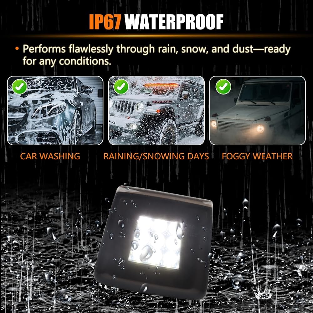 【مقاوم للطقس ومتين】: يوفر غطاء ABS القوي وعدسة الكمبيوتر المقاومة للكسر متانة طويلة الأمد ومقاومة للظروف الجوية القاسية مع القدرة على الحفاظ على الوضوح مع التعرض لفترة طويلة. تتمتع هذه المصابيح بعمر أطول 10X وهي مقاومة للماء بدرجة IP67 لضمان أداء موثوق به على مدار العام.