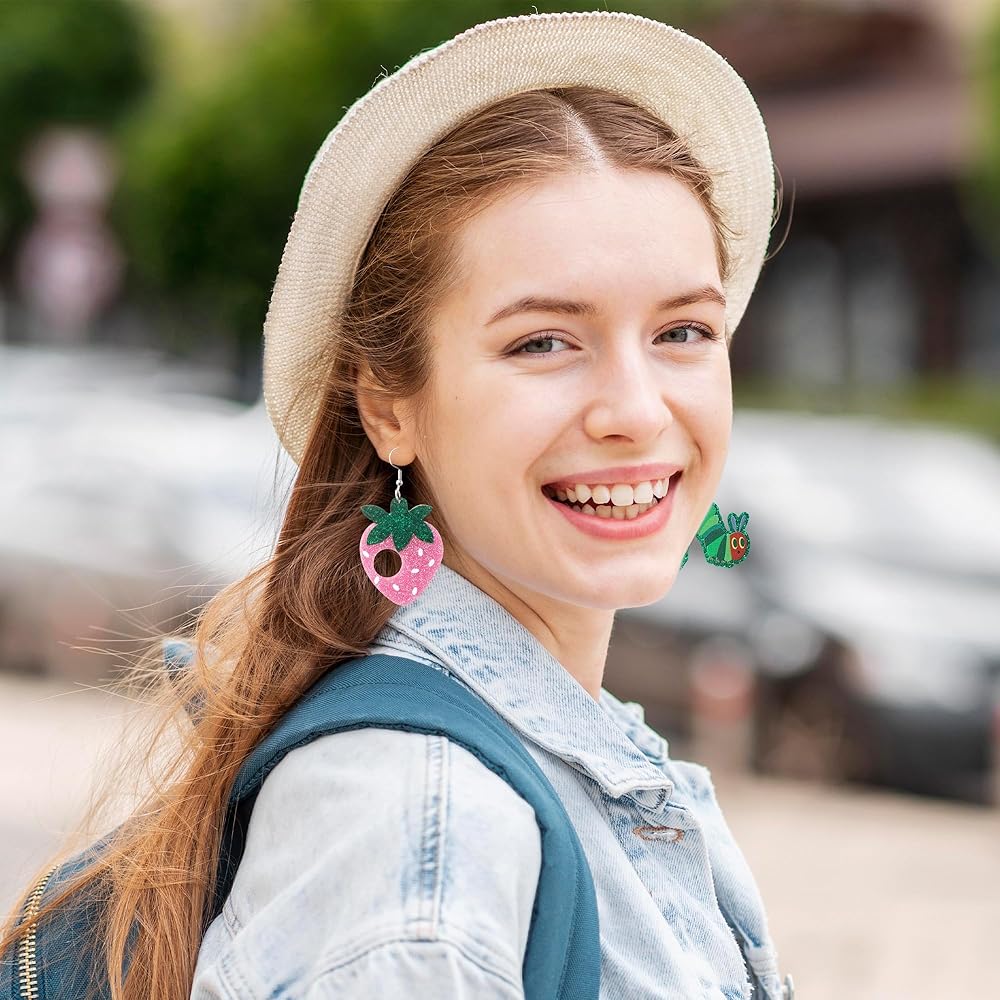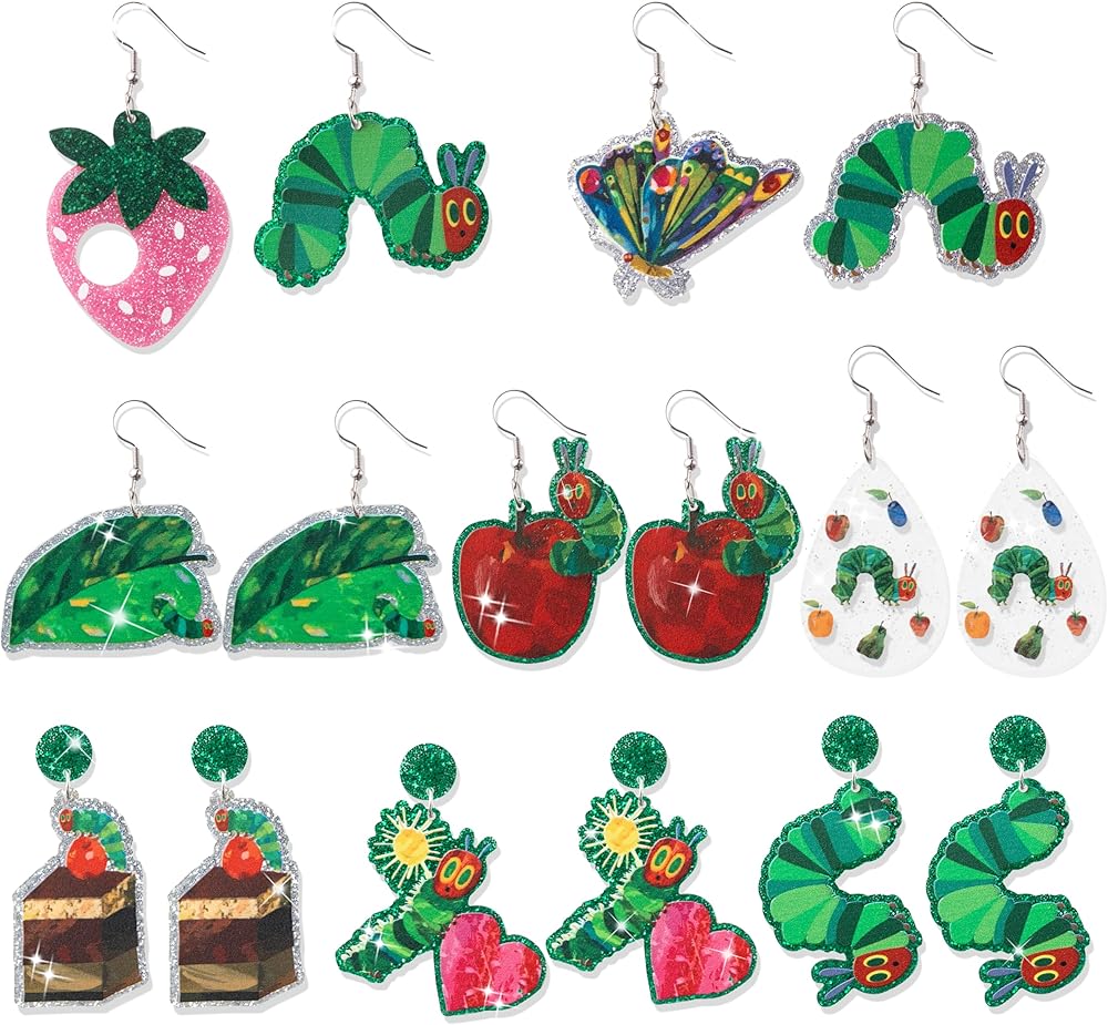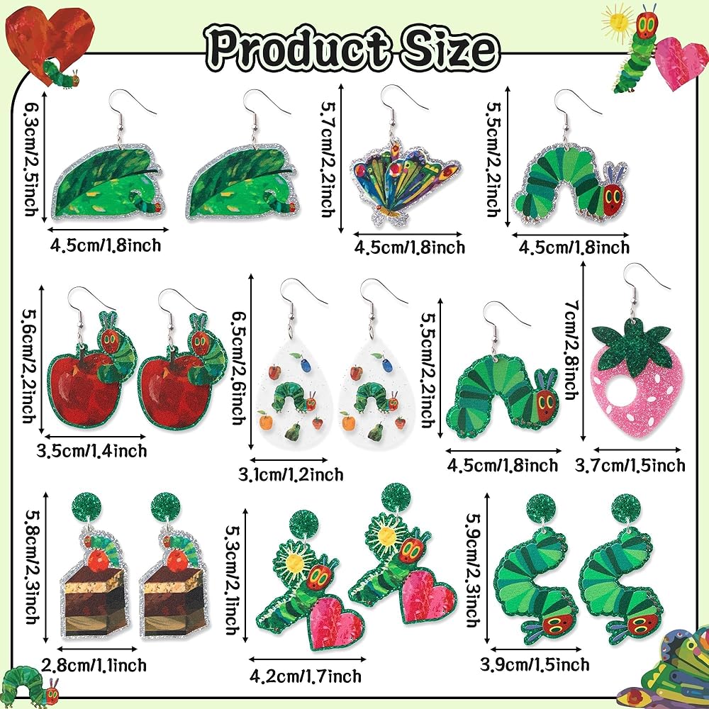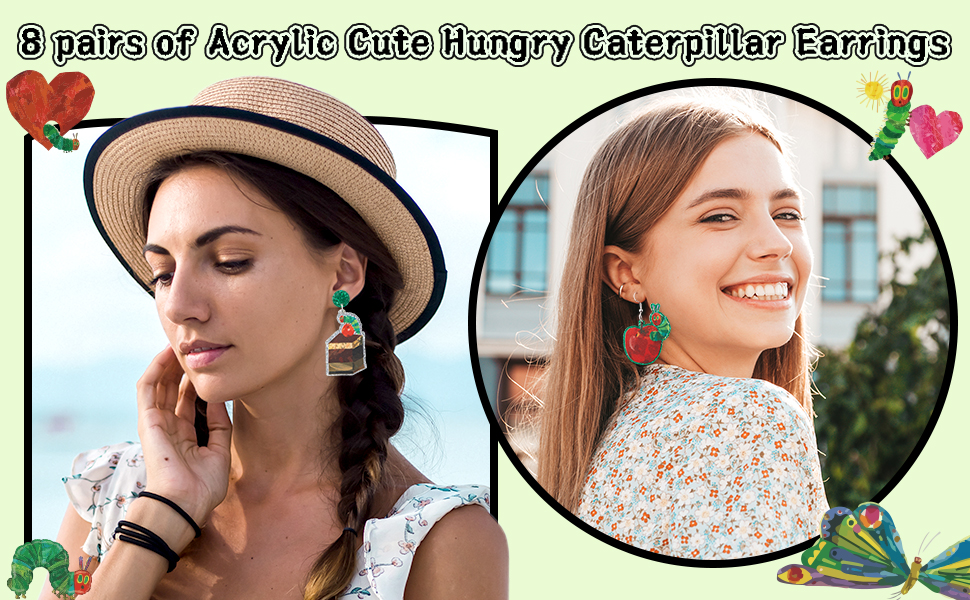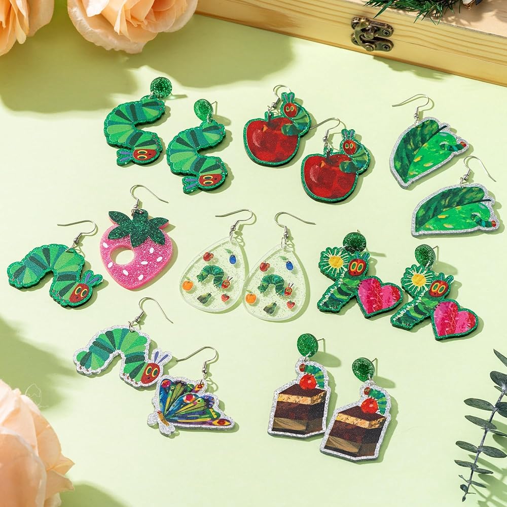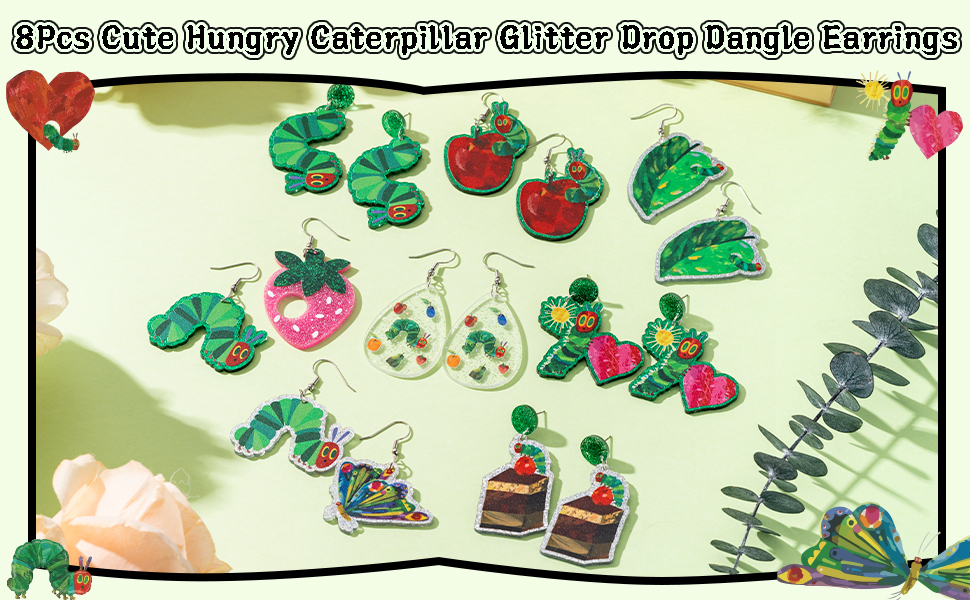 تصميمات كاتربيلر الجائعة المضحكة: سوف تحصل على 8 أزواج من الأقراط المتلألئة الكرتونية الجائعة اللطيفة. تعتبر تصميمات اليرقة اللطيفة والجشعة والفراشات المتلألئة مثالية للسيدات، ويمكن أن تبرز حالة نقية وحيوية بعد ارتدائها.