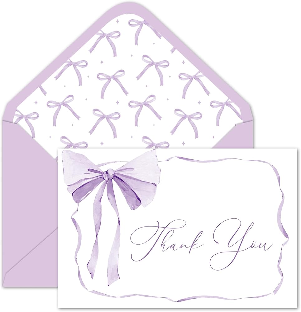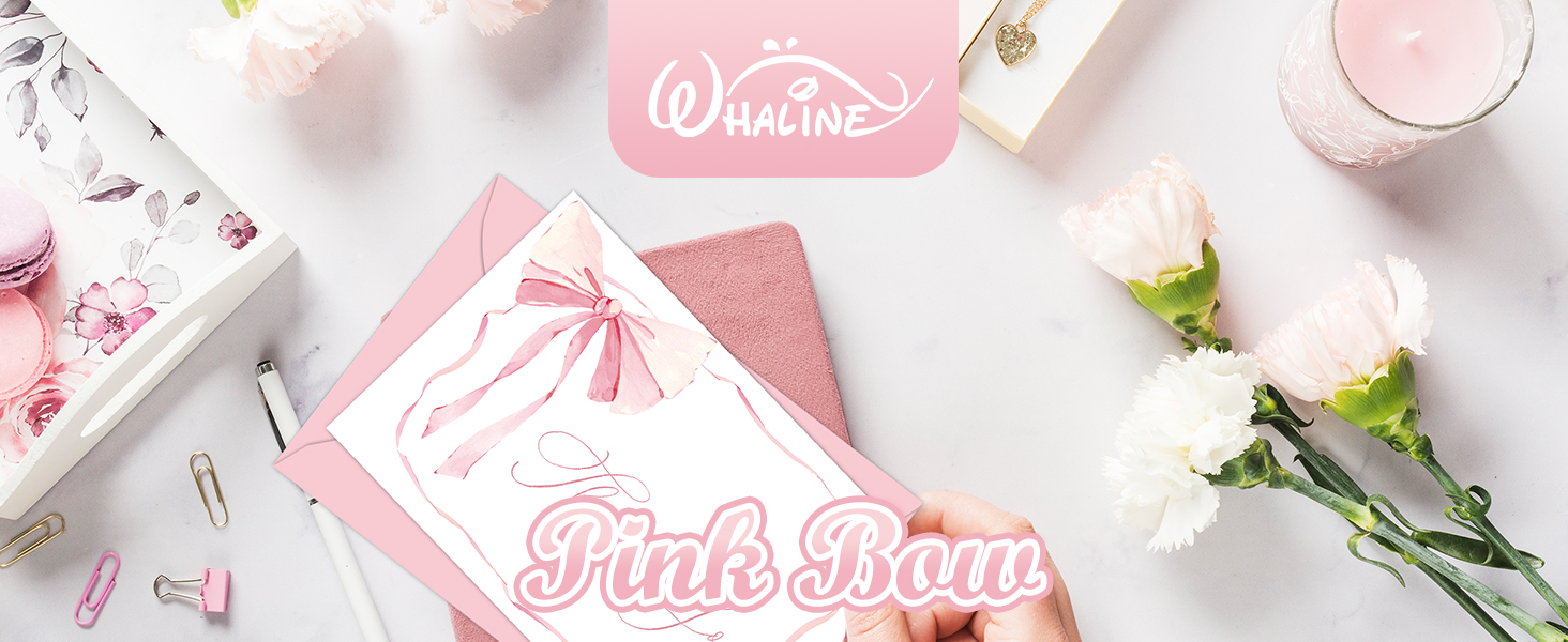 Whaline 24 حزمة من بطاقات الشكر على شكل فيونكة وردية، بطاقات تهنئة على شكل قوس Coquette مع ملصقات مغلفات، بطاقة ملاحظة فارغة لحفلات الزفاف وحفلات استقبال المولود الجديد، مقاس 10.16 × 15.24 سم in Kuwait