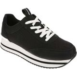 Masseys Women's Ophelia Fashion Platform Sneaker blends elevated style with effortless comfort. This modern sneaker features a synthetic and fabric upper with metallic trim and a secure lace-up closure. A cushioned footbed supports every step, while the lightweight EVA and rubber outsole provides traction and flexibility. The 1½" platform heel adds height and a contemporary edge without sacrificing comfort. Pair the Ophelia with jeans, joggers, or even casual skirts and dresses for a versatile, fashion-forward look. A must-have wardrobe staple, the Ophelia transitions seamlessly from season to season. Unleash your unique style with Masseys, where you can explore the latest trends in clothing and shoes to express your true self confidently to the world.