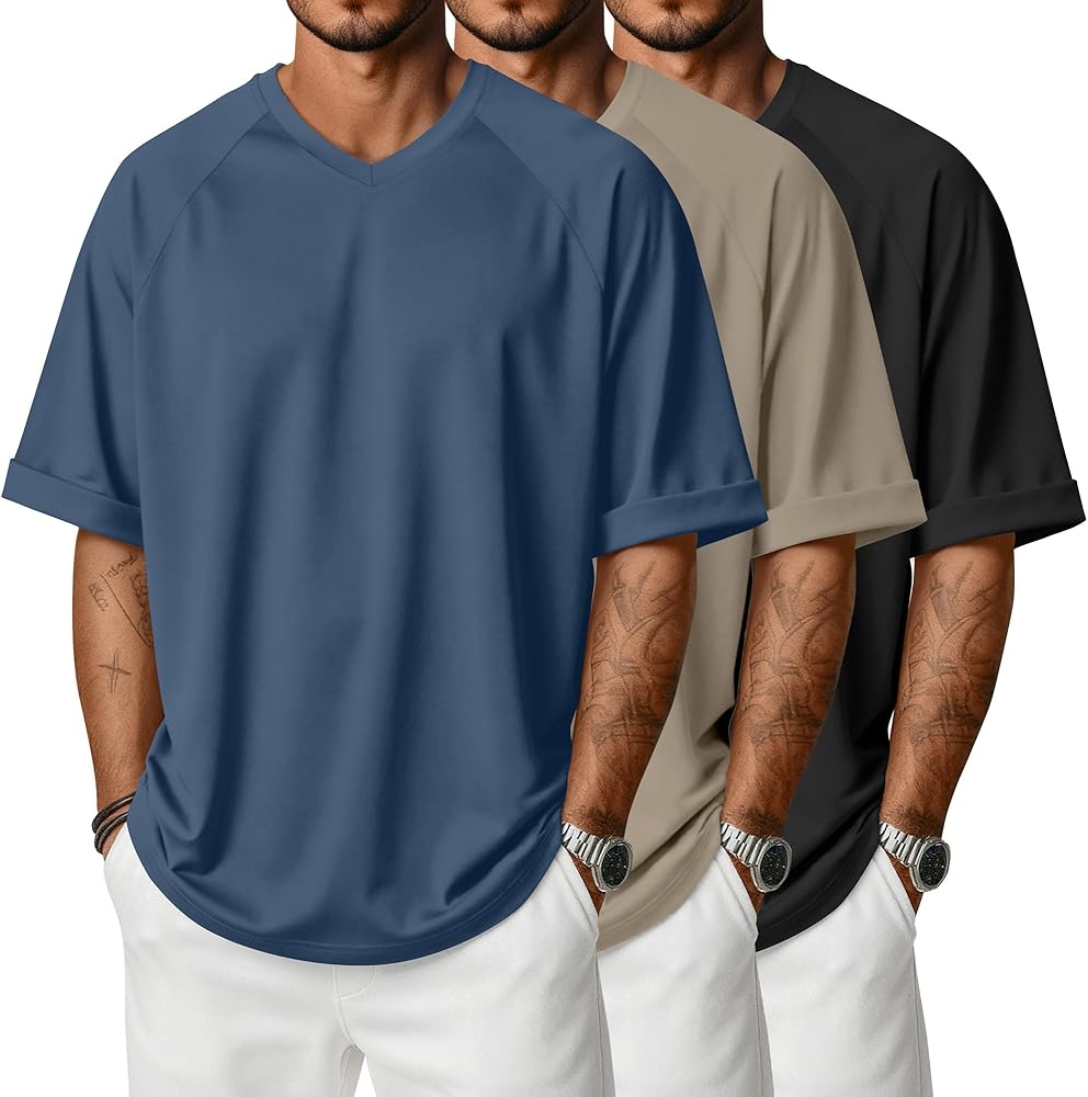 • Oversized Fit: These men's oversized fit t-shirts feature a classic V-neck and raglan sleeves, crafted with moisture-wicking fabric to keep you cool, comfortable, and dry during workouts, gym sessions, or hiking. The rolled hem cuffs add a stylish touch