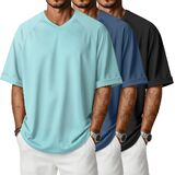 مجموعة من 3 قمصان رجالية كبيرة الحجم فضفاضة نصف كم قصير ورقبة على شكل حرف V وأكمام ملفوفة قمصان صيفية سادة غير رسمية in Kuwait