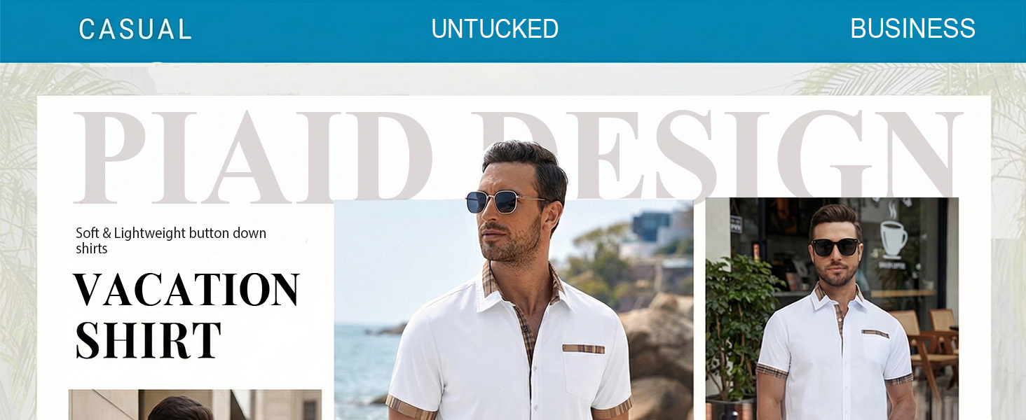 【نمط غير مطوي متعدد الاستخدامات】 مصمم بحاشية منحنية أنيقة، يمكن ارتداء قميص العمل الكاجوال الرجالي الخاص بنا مشدودًا أو غير مطوي، وهو رائع كملابس غير رسمية أو شبه فستان لموعد.