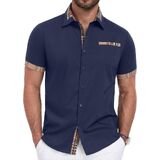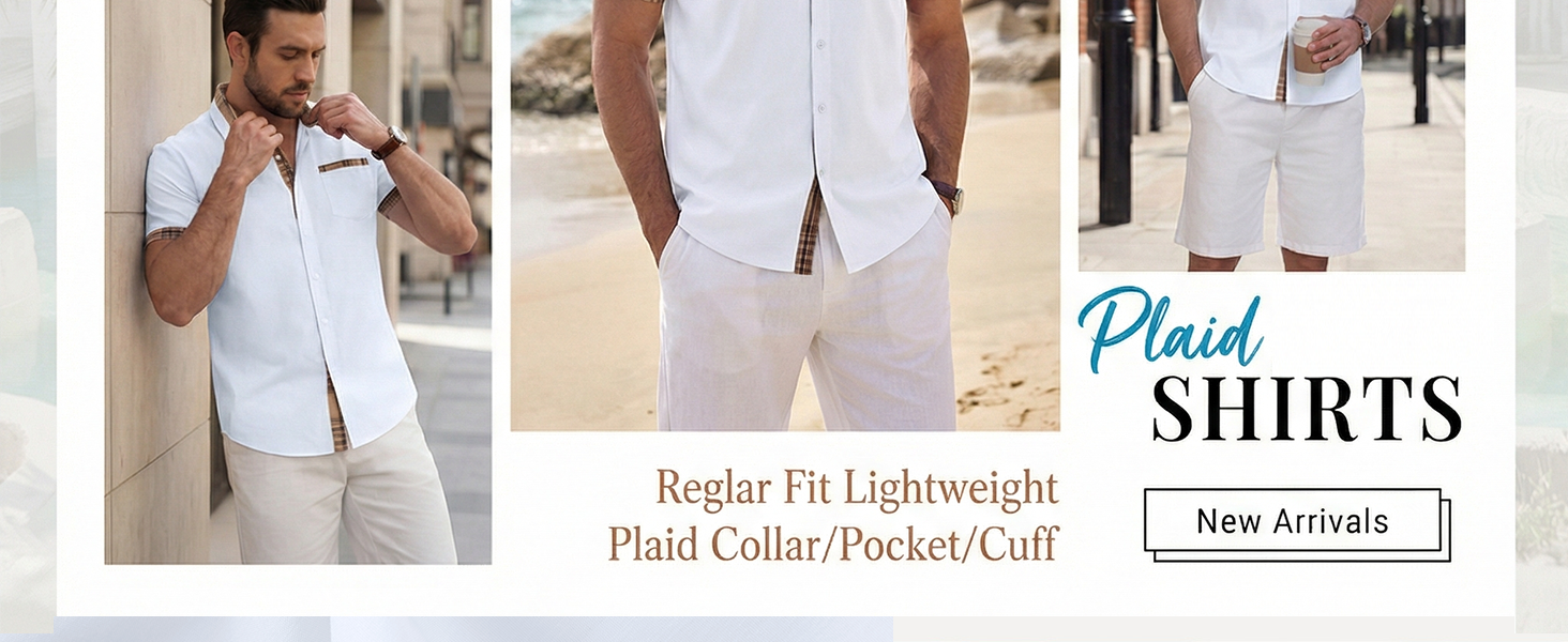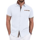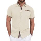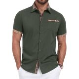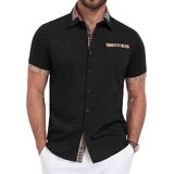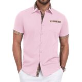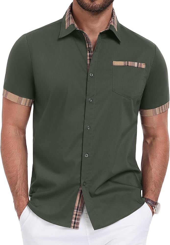 【نسيج ناعم وجيد التهوية】 مصنوع من مزيج ممتاز من القطن والبوليستر، هذه القمصان الرجالية ذات الأكمام القصيرة والأزرار ليست صديقة للبشرة فحسب، بل خفيفة الوزن أيضًا، مما يضمن الراحة طوال اليوم في الصيف.