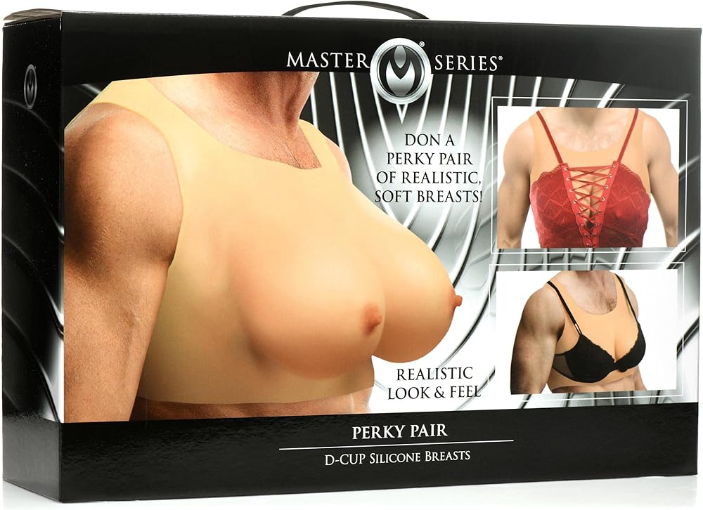 With these size D breasts you can try out all kinds of new personalities and roles! Made of premium silicone, they are silky smooth, soft to the touch and also body-safe and phthalate free. They have a realistic look and feel to them so you can enjoy every squeeze and caress with perky nipples that have artistic detail on the nipples and areolas that add to the look. They fit over the shoulders and around the chest with a harness-like silicone shirt that the breasts are attached to; this makes for a comfortable and supported pair of breasts! Wear them under clothing and enjoy roleplaying, cosplaying, feminization and costuming! Slip on this wearable silicone pair of breasts and you're ready to start accessorizing and dressing up! Whether you want to have a nice pair of breasts for a while that are bigger than your own, or if you have a partner of Domme who is working on feminizing you, these are fun and comfortable to wear! Some may enjoy this pair under their drag queen outfit! Others will dress up as a sissy maid for their Mistress! It can be a fun way to roleplay and can also cross over into cosplay, as well! Perhaps you're going through transition and don't have top surgery; try this pair and get a feel for a size D! Add bras, lingerie, dresses and more to see what it looks like to have a truly perky pair! Wash with warm water and toy cleaner after each use. Pat dry and store in a cool, dry location, away from direct sunlight and separated from other toys. Chest stretches from 30 inches to 60 inches in circumference. Total weight: 6.5lbs.