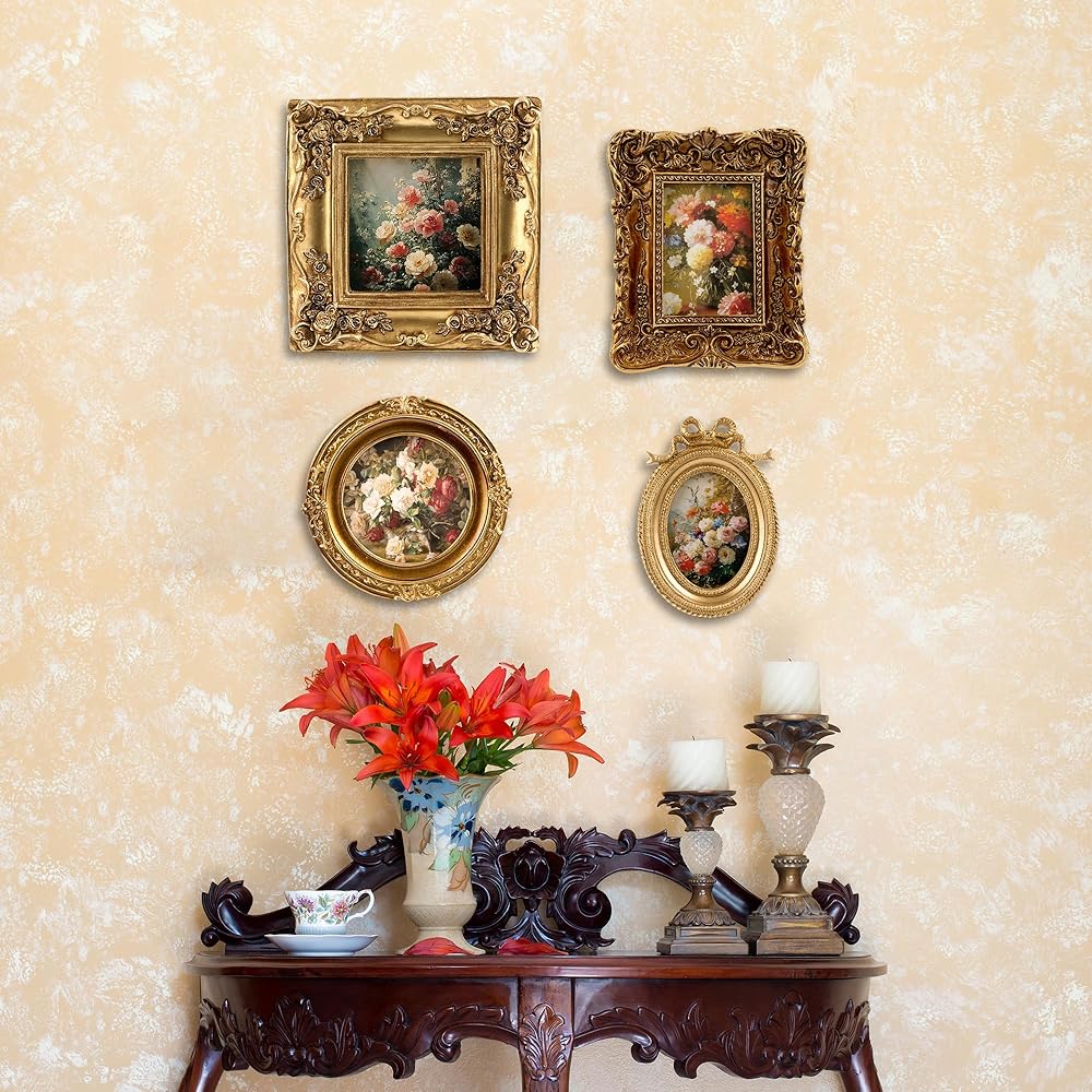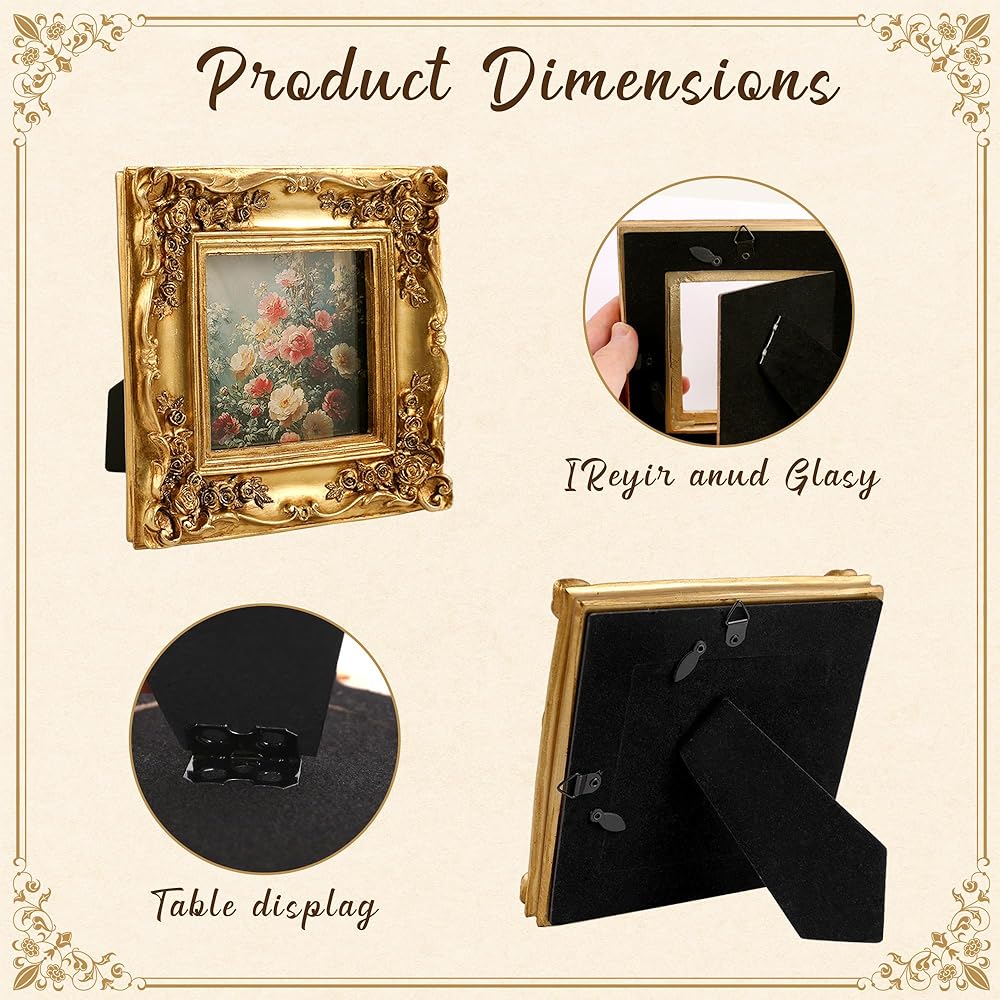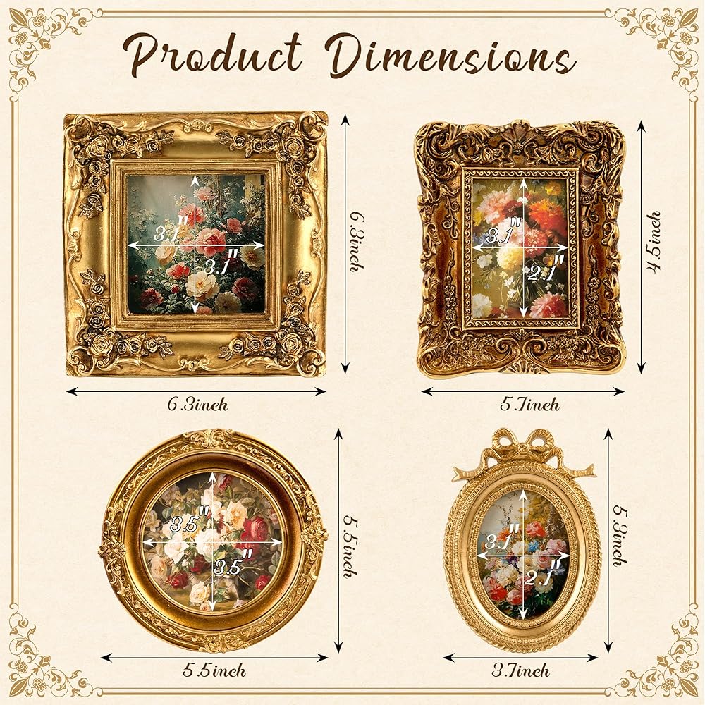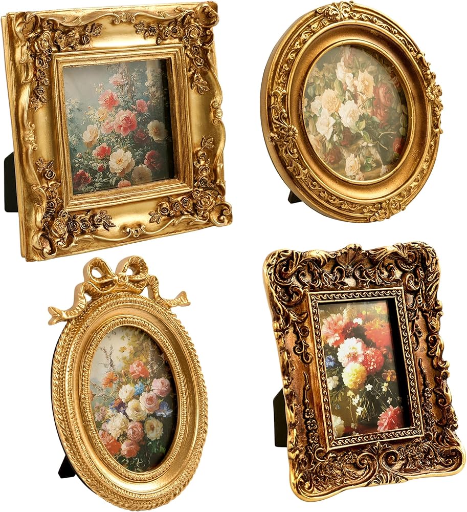 مجموعة من 4 إطارات صور ذهبية عتيقة صغيرة عتيقة للتعليق على الحائط وعرض الطاولة، إطار صورة ذهبي مزخرف صغير لديكور المنزل الفني (5.7 بوصة × 4.7 بوصة، 5.5 بوصة × 5.5 بوصة، 3.7 بوصة × 5.3 بوصة، 6.3 بوصة × 6.3 بوصة)