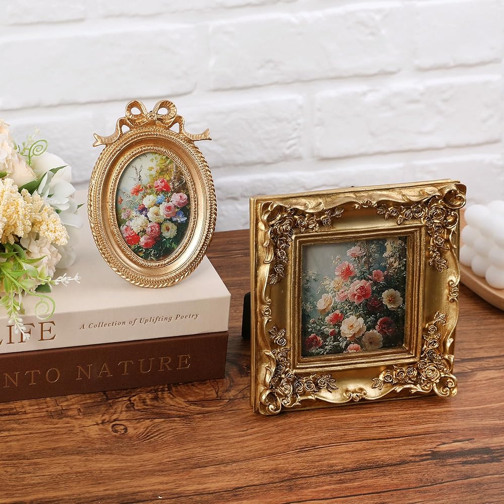 【Elegant Vintage Design】 Enhance your decor with timeless Victorian charm. Mini gold picture frames vintage boasts an intricate floral pattern and a luxurious old-world gold finish. This exquisite vintage picture frame acts not just as a photo holder, but as a beautiful piece of art that adds a touch of classic elegance to any room's aesthetic.