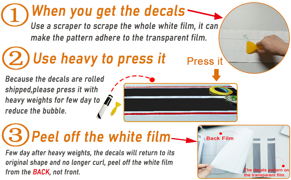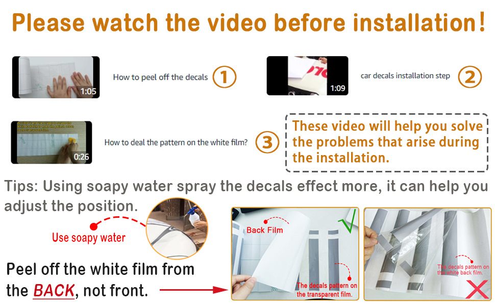 • التثبيت: قم بتنظيف سطح السيارة ورش بعض الماء عليه؛ انزع الطبقة الخلفية وأزيلي بعض الماء على نمط الملصقات؛ التمسك بسطح السيارة. استخدم ممسحة لكشط الفقاعات؛ انزع طبقة النقل الشفافة واقطع الفائض