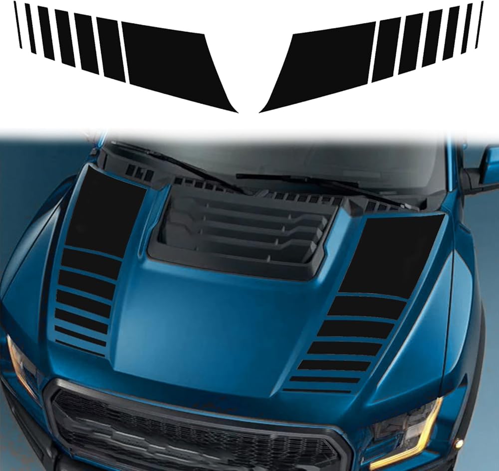 رامويل متوافق مع قطعتين من غطاء غطاء السيارة من ملصقات الفينيل المخططة وخطوط السباق وأغطية غطاء محرك السيارة وشارات الديكور وملحقات الرسومات لشاحنة الالتقاط العالمية (أسود)