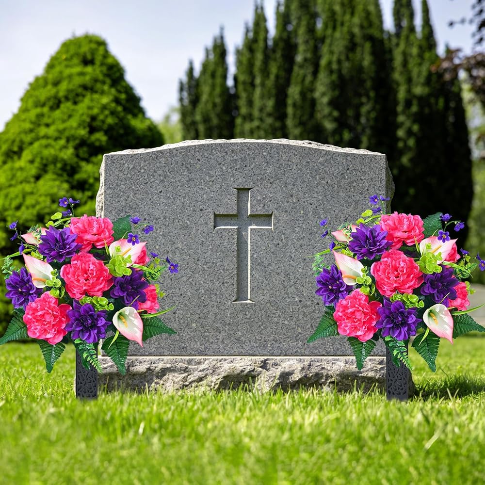 When words fail, flowers speak for the heart. Say goodbye to the flat, dull, and cheap-looking artificial flowers that fade or blow away within days. Introducing our premium **27-Inch Full & Beautiful Cemetery Flowers**—a stunning tribute designed to transform your loved one's sacred space into a vibrant garden of memory. Unlike traditional imitations, these bouquets are lush, three-dimensional, and bursting with distinctive, lifelike colors that capture the beauty of fresh blooms without the constant upkeep. They do not just decorate a grave; they create a beautiful sacred land where love and beauty coexist, offering a visual embrace every time you visit.