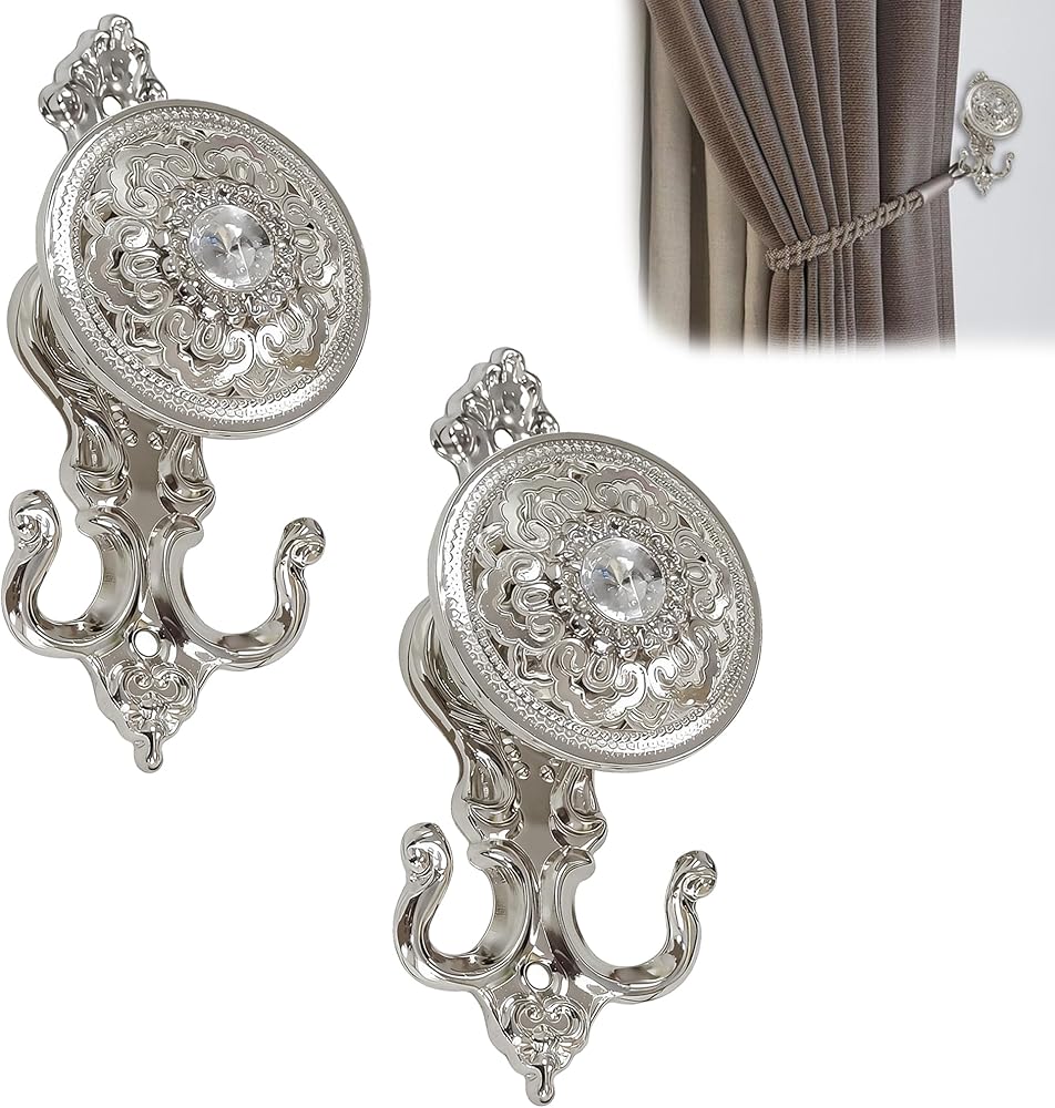 Durable Metal Construction for Heavy Drapes: Made from high-quality zinc alloy with a thickened U-shaped hook arm, our drapery holdbacks offer superior strength compared to plastic alternatives. They easily secure heavy blackout curtains or thick velvet drapes without bending, ensuring long-lasting performance and rust resistance in humid environments.