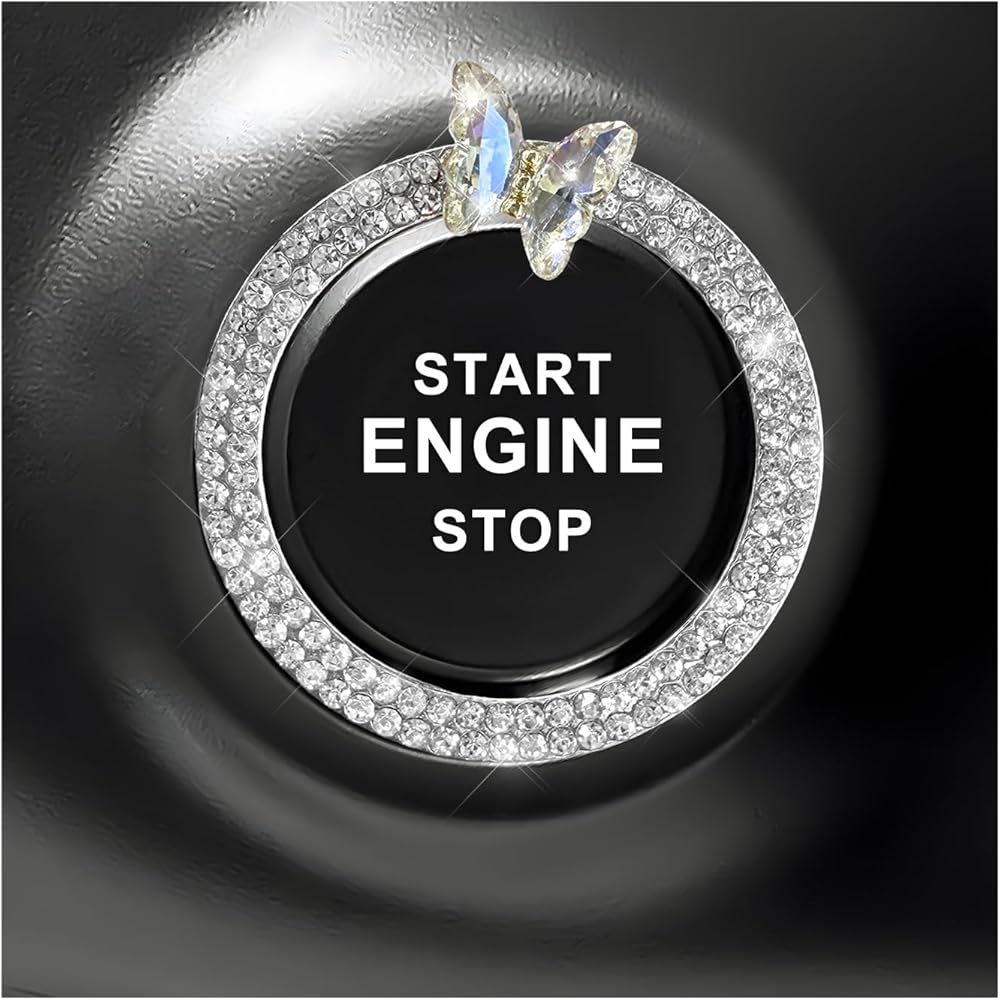 Exquisite Decoration: This car ignition button decorative ring adopts a double row of rhinestones design, which shines brightly under the light. There is also a delicate and small butterfly inlaid on the ring, which enhances the visual beauty and makes your driving space more exquisite and stylish